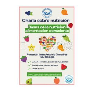El Banco de Alimentos de Melilla pondrá en marcha un nuevo proyecto de charlas centradas en nutrición, una iniciativa dirigida principalmente a personas beneficiarias y que también se abre a quienes forman parte del día a día de la entidad, desde trabajadores hasta personas vinculadas a la atención y el reparto de alimentos. El ciclo arrancará con la primera sesión titulada “Bases de la nutrición: alimentación consciente”, prevista para el 10 de febrero de 2026, a las 11:00 horas, en la nave del Banco de Alimentos, según la convocatoria difundida por la organización.