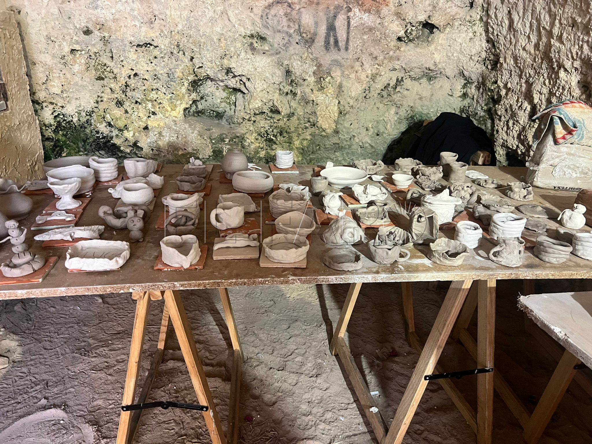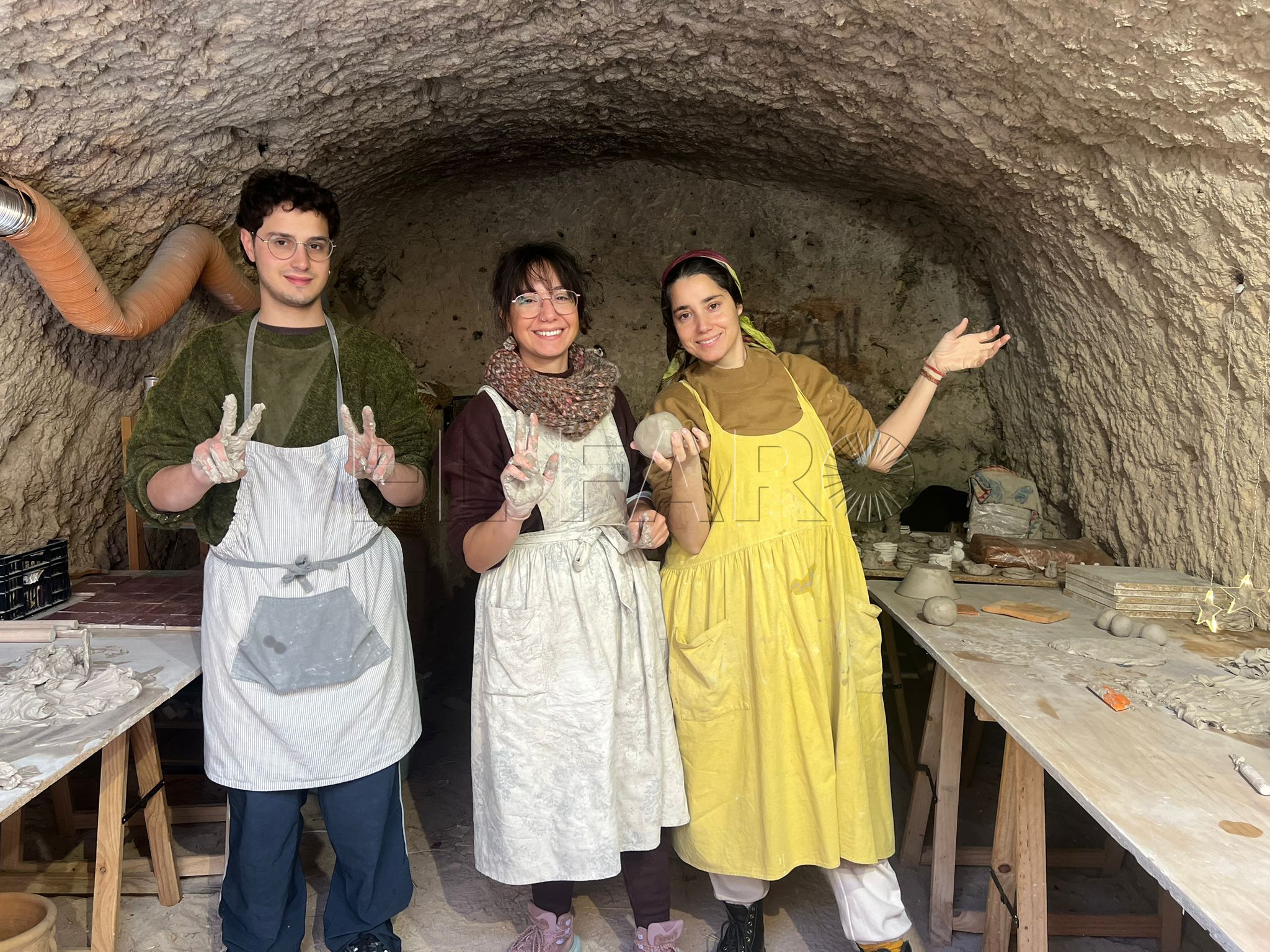 En la parte superior del recorrido, uno de los espacios que más llama la atención es el dedicado a la alfarería. Allí, la visita deja de ser únicamente contemplativa y se convierte también en una oportunidad para ver un oficio en acción. Marian, una de las ceramistas, explicó que están representando y realizando exhibiciones de lo que es el trabajo con el barro “de forma totalmente real”, mostrando cómo se modelan piezas en directo.