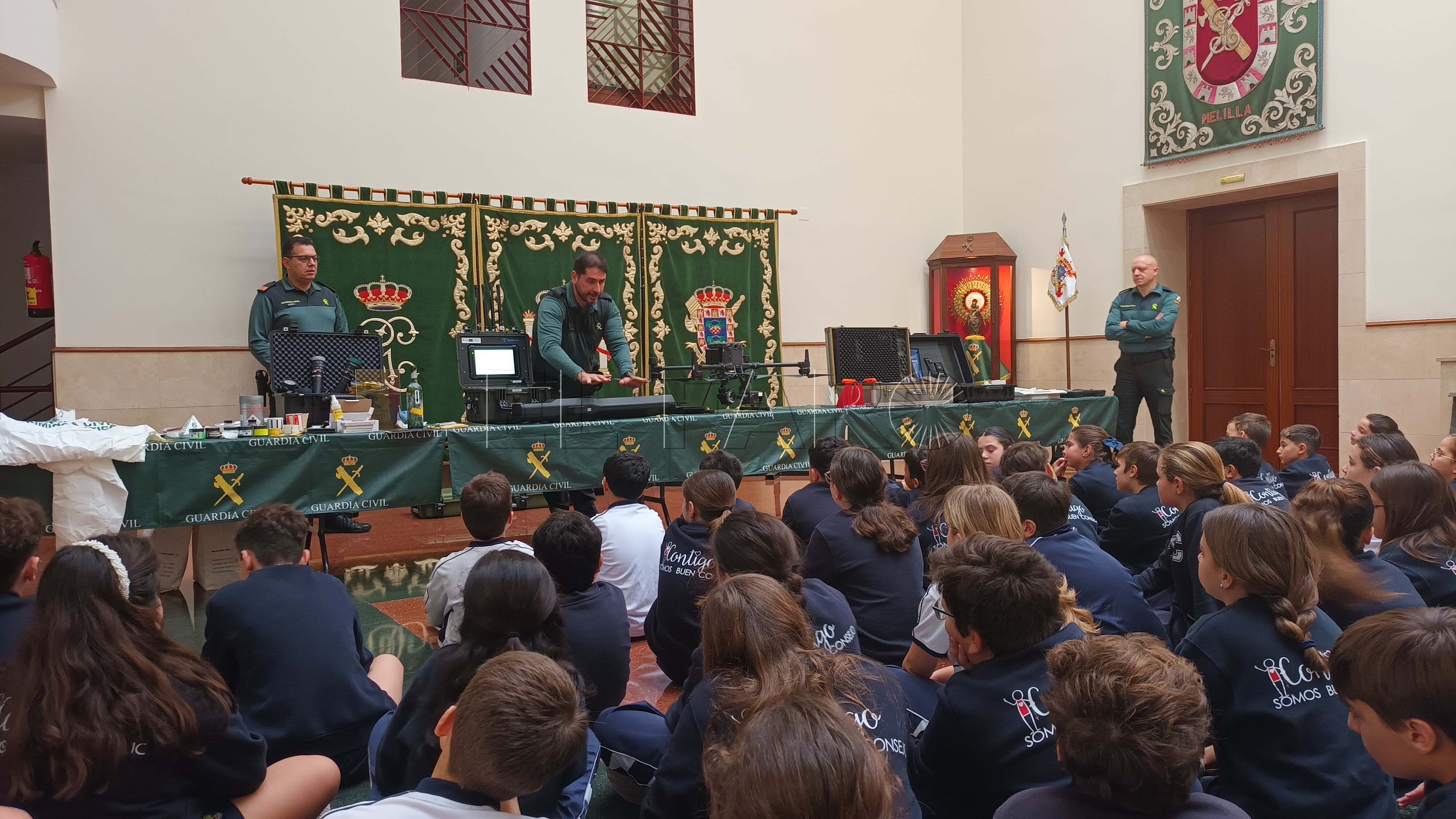 La Guardia Civil de Melilla ha celebrado este 11 de febrero una jornada de puertas abiertas en la Comandancia con la participación de 71 alumnos de entre 10 y 11 años del Colegio Nuestra Señora del Buen Consejo, acompañados por sus profesores, dentro de una iniciativa destinada a acercar la labor del Cuerpo a los más jóvenes y dar a conocer sus funciones y valores de servicio a la comunidad.