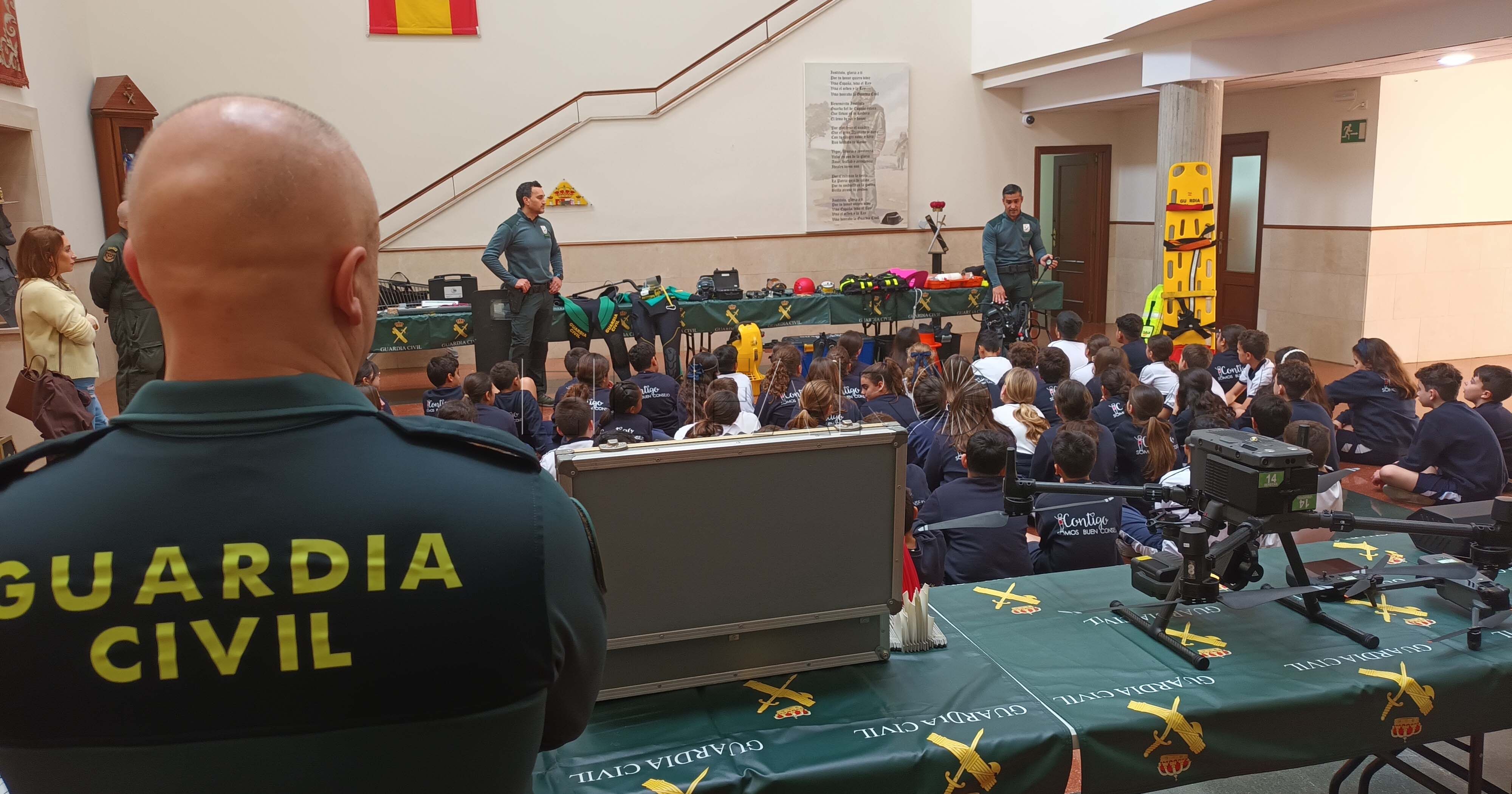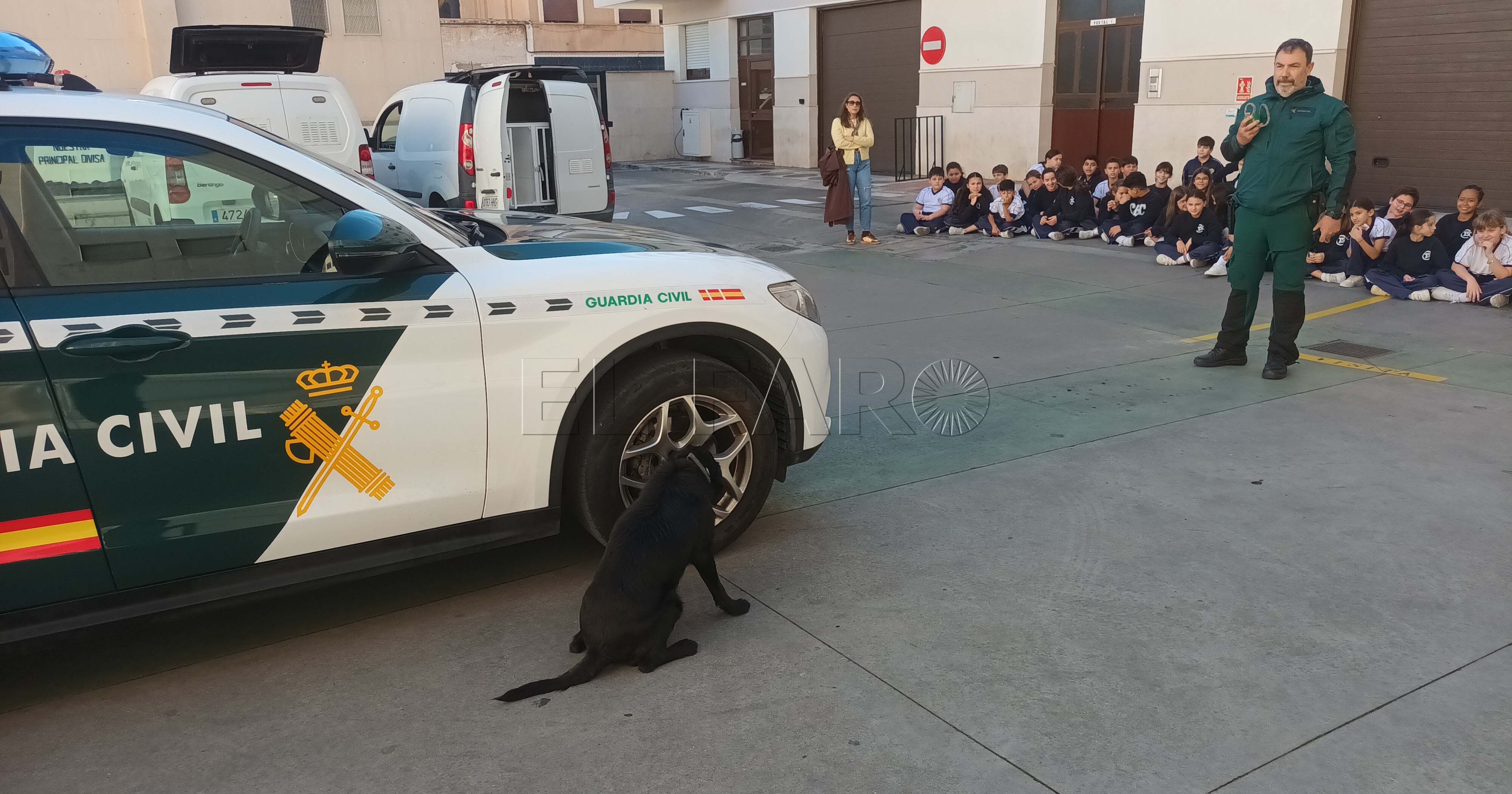 La jornada comenzó en la plaza del Guardia Civil Veterano, donde el Servicio Cinológico ofreció una demostración con varios canes. Durante la exhibición, los alumnos observaron distintos ejercicios realizados por los perros adiestrados, lo que les permitió comprobar cómo trabajan estos equipos en intervenciones específicas.