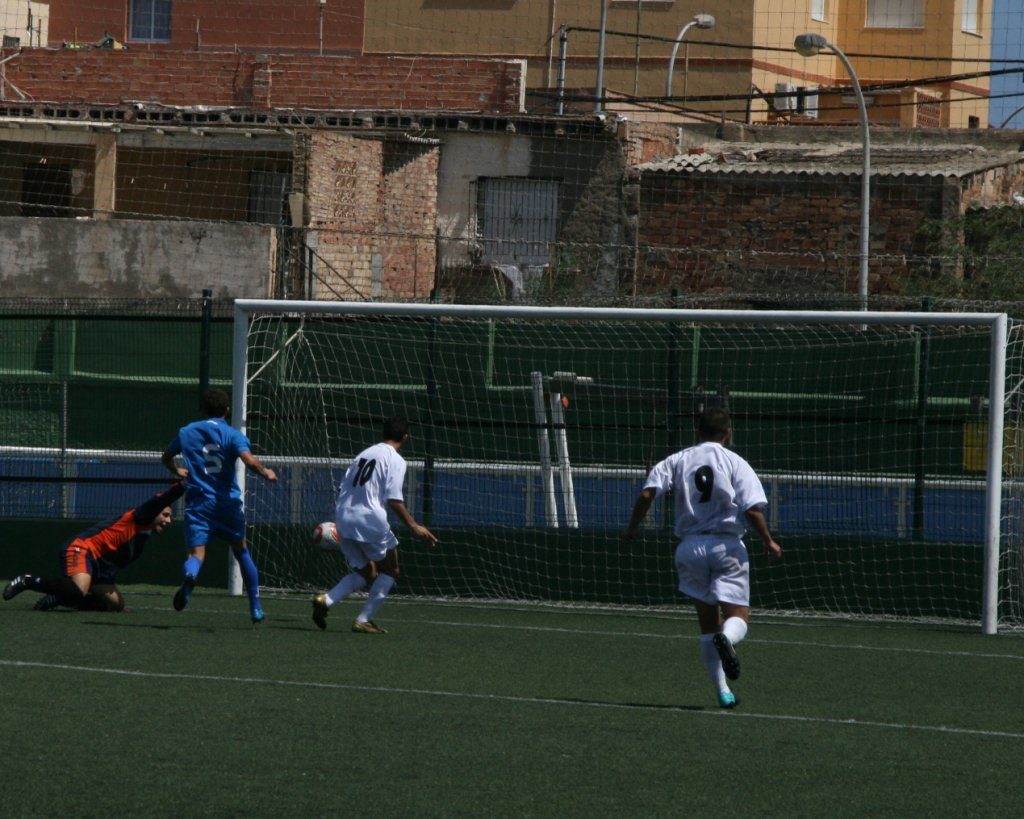 La primera mitad arrancó con dominio del conjunto malagueño que con más desparpajo que los locales y con jugadores de experiencia en la categoría, como son Francis flores, Zuñiga y Ruíz, todos ex UD Melilla, que marcaron del devenir del choque. Las primeras ocasiones fueron para el conjunto de la axarquía, aunque la falta de acierto de sus delanteros y el buen hacer del meta Jesús evitaron que pudieran marcharse al descanso con ventaja.