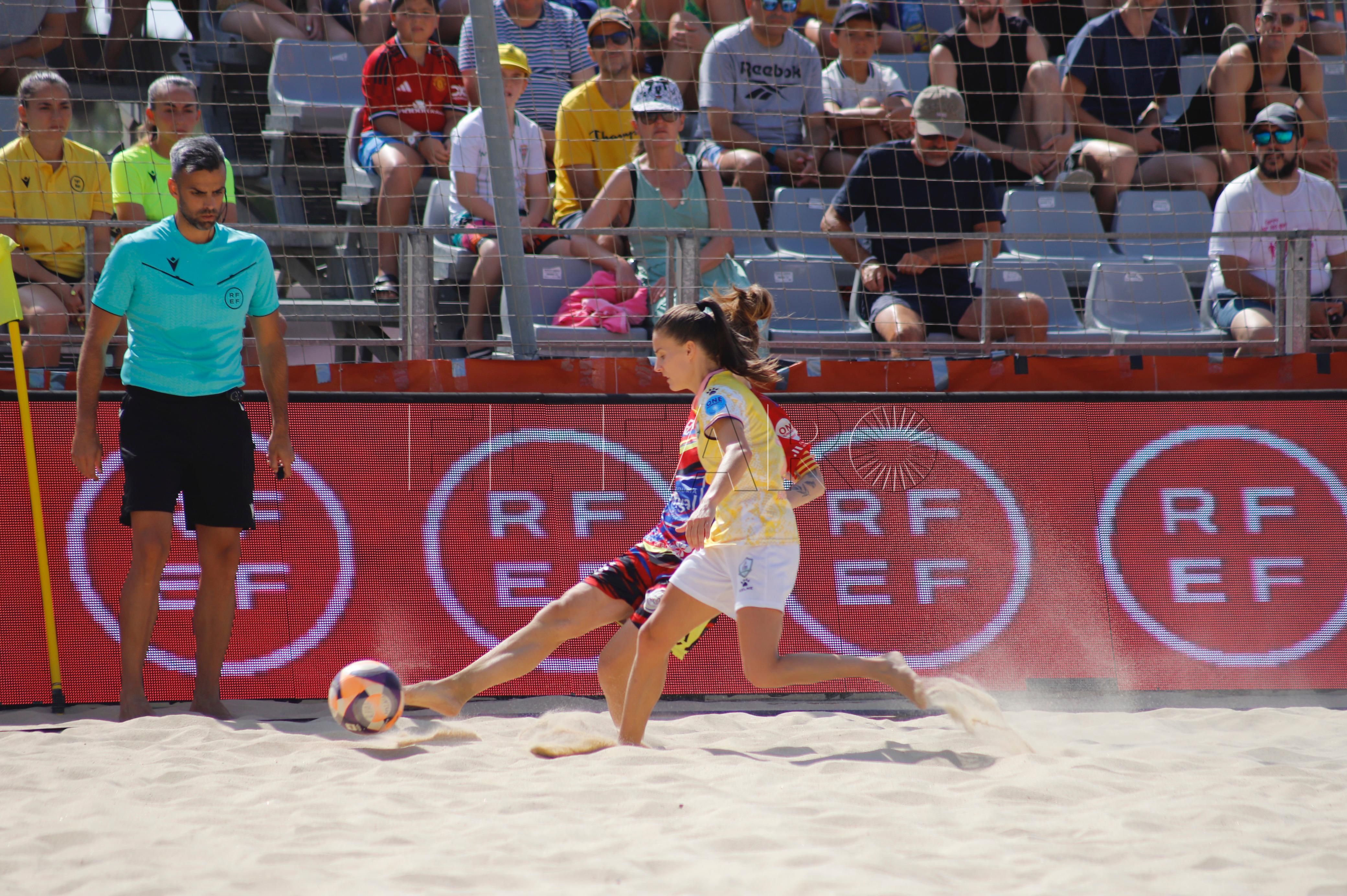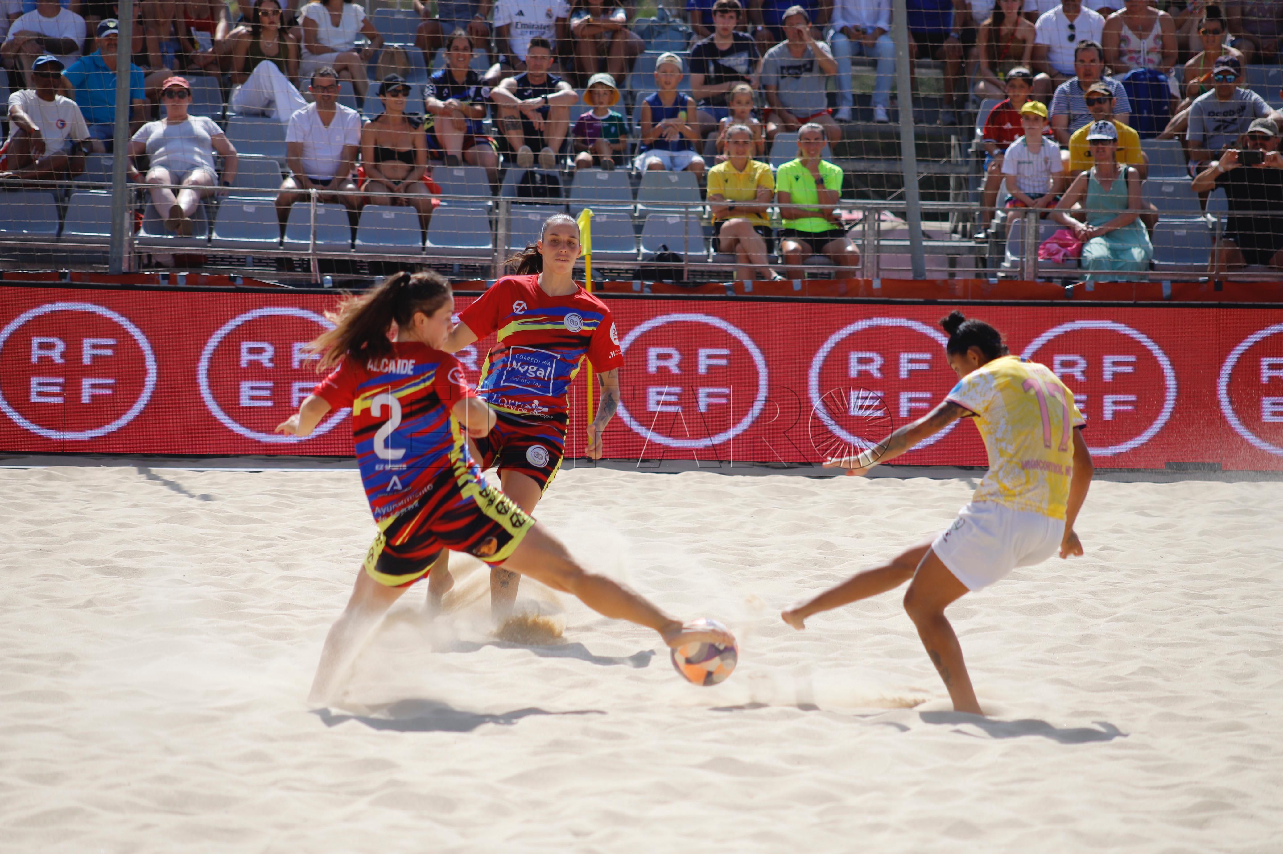 El cuadro del CD Higicontrol, a falta de siete minutos para el final de este periodo, tuvo un penalti a su favor que fue lanzado por Carol González pero lo detuvo la portera rival. Los minutos pasaron con un bonito espectáculo de fútbol playa femenino viéndose a los dos mejores equipos de Europa en la presente temporada. Natalia Cuadrado estrelló su chilena en el larguero malagueño.
