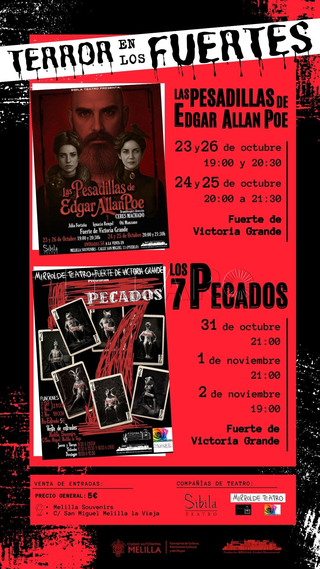 Sibila representará Las pesadillas de Edgar Allan Poe, del 23 al 26 de octubre; mientras que Mirrolde ofrecerá Siete pecados del 31 de octubre al 2 de noviembre.