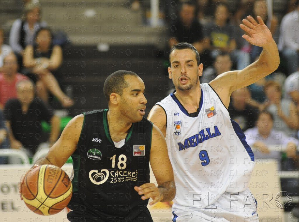 El primer cuarto comenzó con un ritmo absolutamente frenético. Un intercambio de tiros desde 6,75 arrojó un 9-7 rápido en el marcador cuando no se había disputado más que dos minutos de juego. Devries tomó el mando en el Melilla Baloncesto, y suyos fueron nueve de los primeros 15 puntos de su equipo. El pim pam pum en el que se había convertido el encuentro fue frenado por los norteafricanos en el ecuador del primer acto cuando ajustó su defensa (14-17). Volteó la situación el cuadro cacereño con un parcial de 5-0 que volvía a poner a los locales por delante (19-17). Una canasta del local Rodríguez sobre la bocina puso el 23-21 con el que se llegó al final de los primeros diez minutos.