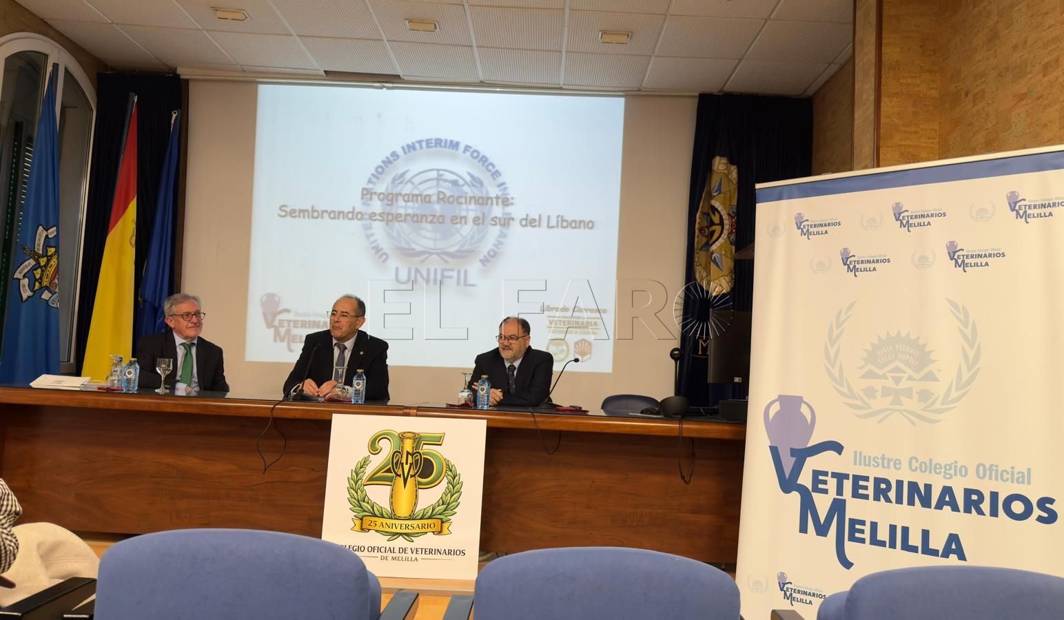 La segunda conferencia puso sobre la mesa el Programa Rocinante, una operación de colaboración de la Universidad de Córdoba con las tropas desplegadas en el Líbano para mejorar la cabaña ganadera de sus habitantes, que disponen de pocos recursos económicos y dependen con frecuencia de sus propios rebaños de vacas u ovejas. Desde las 19:00, el también veterinario Librado Carrasco Otero, expuso esta charla titulada “Programa Rocinante: sembrando esperanza en el sur del Líbano”. El presidente del Colegio melillense destaca que el conferenciante ha estado unas doce veces en el sur del Líbano para ofrecer ayuda a la población civil y a nivel militar, resaltando el apoyo institucional que ofrece la Facultad de Veterinaria de Córdoba en este proyecto. A lo largo de la tarde del jueves, el público asistente pudo disfrutar de una exposición sobre los orígenes del Colegio en la Sala Multiusos de la UNED Melilla.