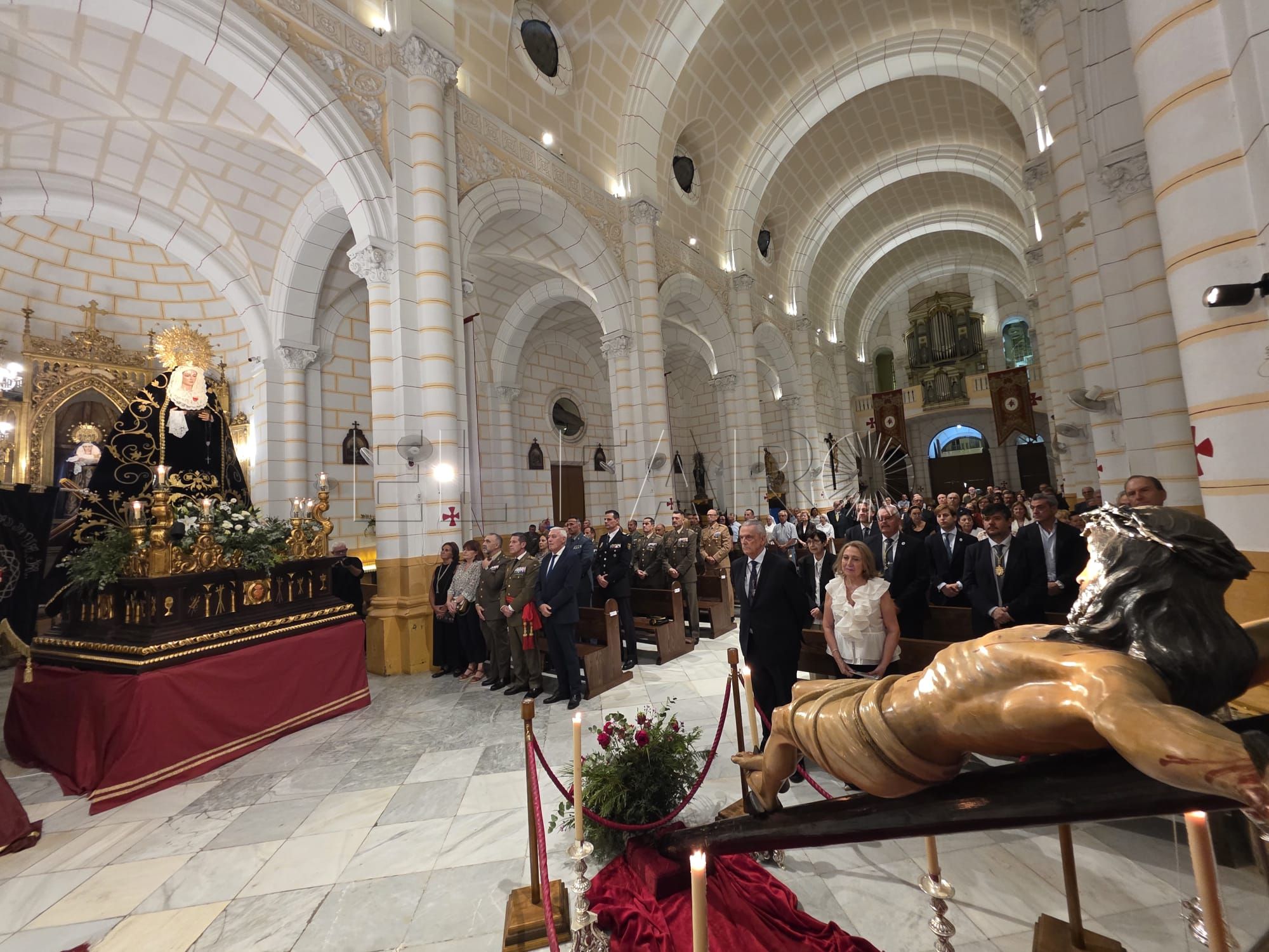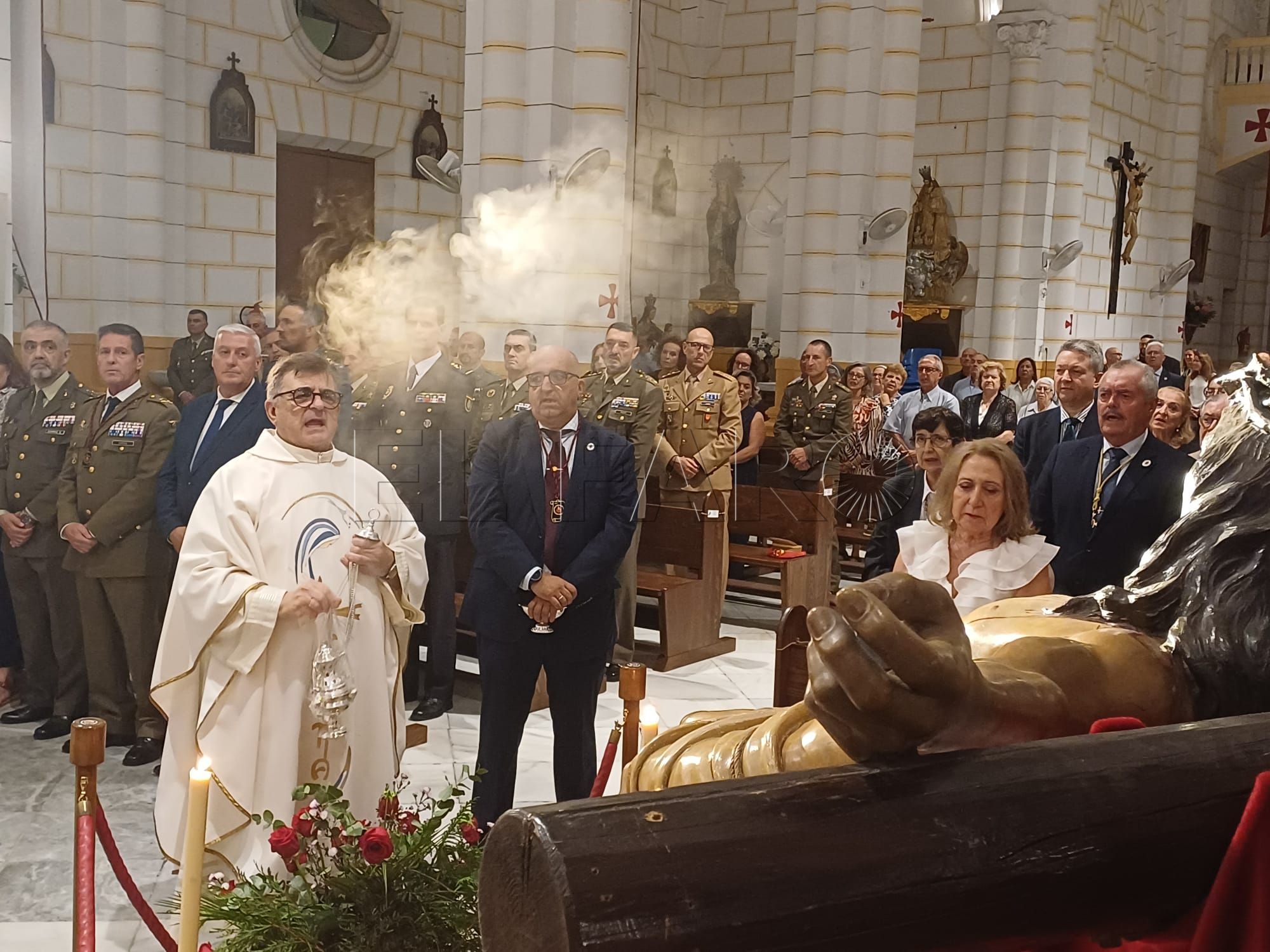 Una iglesia llena de feligreses y cofrades ha querido participar de este acto tan solemne, aunque cabe destacar la nutrida presencia castrense en este templo. También se ha contado con presencia institucional de la mano del vicepresidente Tercero de la ciudad, Daniel Ventura, así como de las Fuerzas y Cuerpos de Seguridad del Estado, con el nuevo jefe Superior de Policía de Melilla, Juan de Dios Piedra y el coronel Jefe de la Guardia Civil, Jesús Rueda.