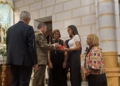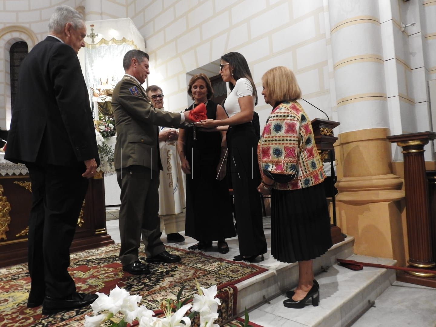 A continuación, llegó el gran momento cuando el comandante general hizo entrega del fajín de general a las camareras de la parroquia para que lo pongan a la Virgen.