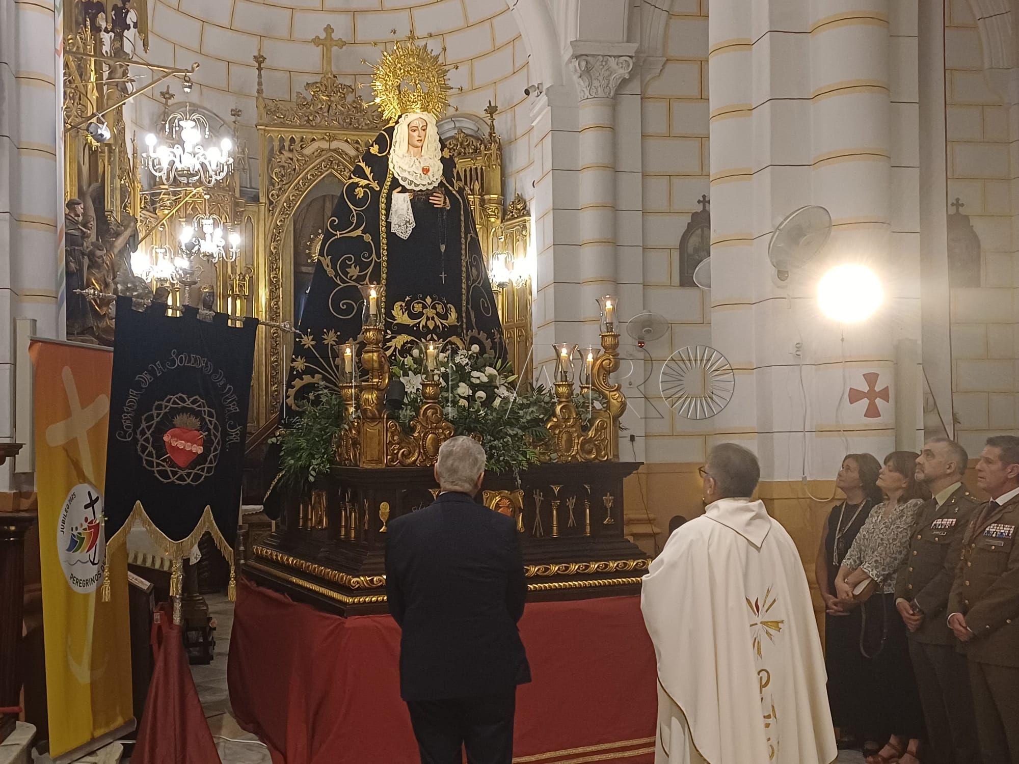 Tras la celebración de la Eucaristía, el hermano mayor, Francisco Javier Calderón, impuso las medallas de esta Cofradía al comandante general y a su esposa, convirtiéndose ambos en hermanos de la Soledad y el Cristo de la Paz.