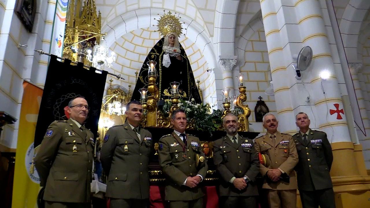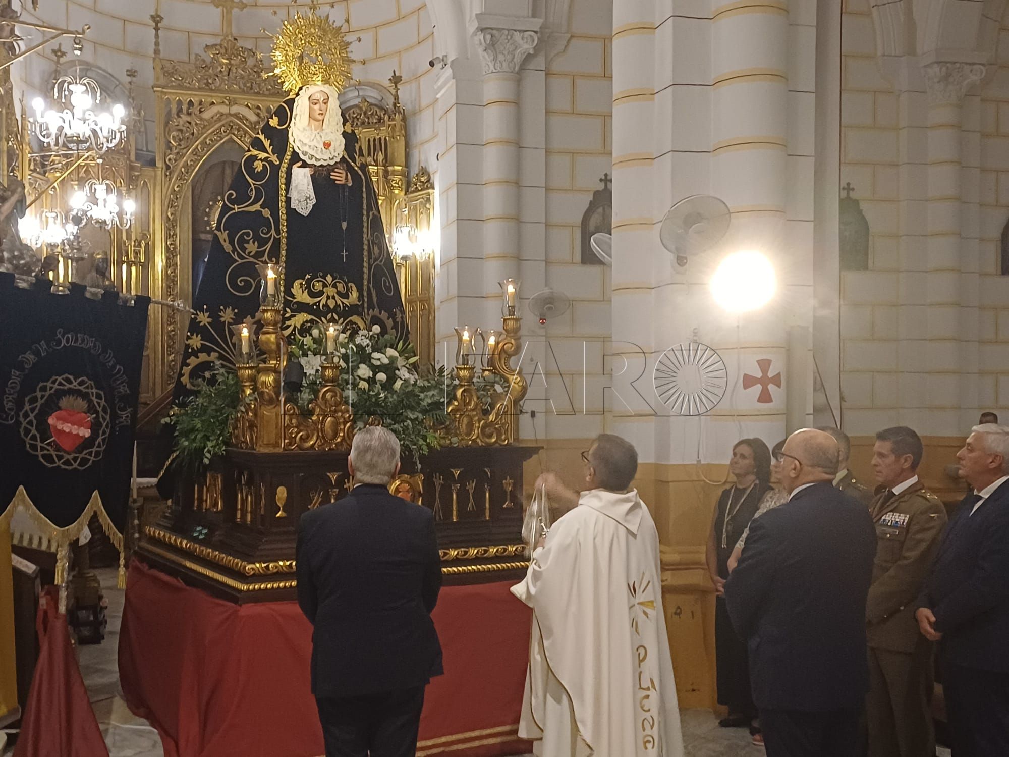 La Parroquia del Sagrado Corazón de Jesús ha acogido esta tarde un acto de gran solemnidad. La Virgen de la Soledad ha recibido de manos del comandante general de Melilla, Luis Cortés, el fajín de General que a partir de ahora portará en sus cultos y salidas procesionales.