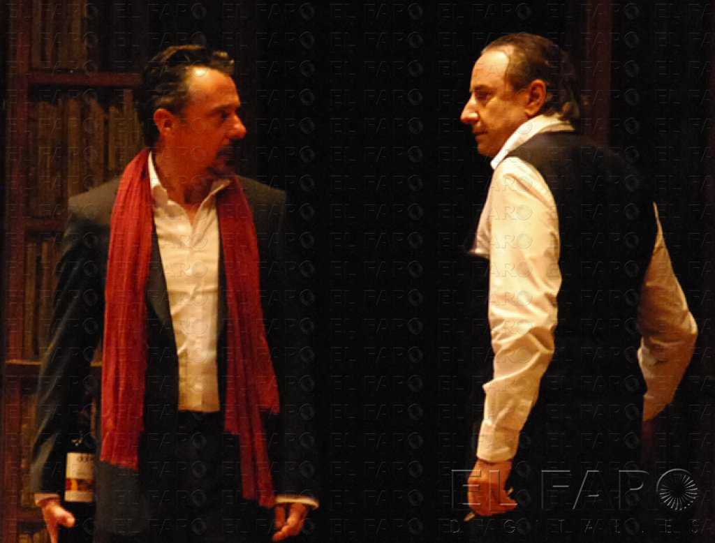 Juanjo Puigcorbé y Pere Ponce protagonizaron ayer la primera función que ‘El crítico’, una obra de teatro que habla sobre la dependencia de los seres humanos y las relaciones de se pueden establecer entre los maestros y los aprendices. Este texto es una batalla entre dos profesionales del mundo del teatro, de la que ninguno saldrá vencedor, tal y como explicaron estos actores a El Faro.