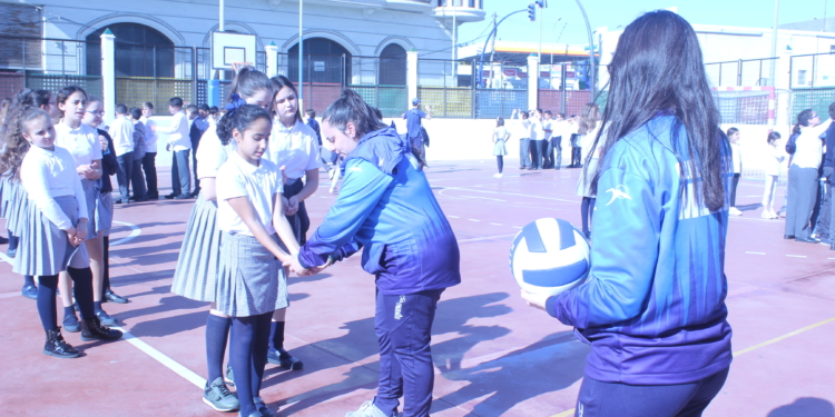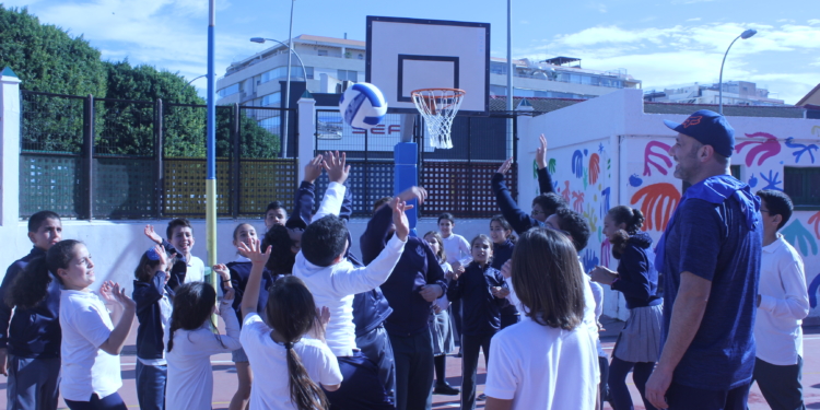 Los componentes de ambos equipos deleitaron a los alumnos y alumnas con una pequeña exhibición sobre los gestos básicos del juego del voleibol y a continuación los propios niños/as desarrollaron los conceptos técnicos que recibieron como aprendizaje de los profesionales de este deporte.
