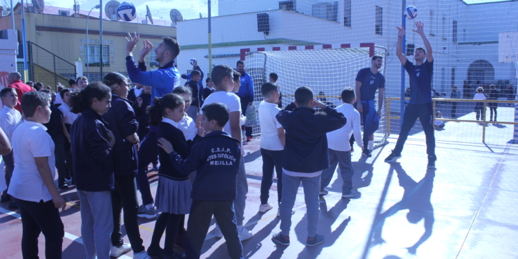El Club Voleibol Melilla continúa con su labor de promocionar el deporte del voleibol en la ciudad autónoma, y en la mañana de ayer miércoles los componentes de los equipos masculino de la Superliga Masculina y femenino de la Primera División Nacional visitaron el CEIP Reyes Católicos.