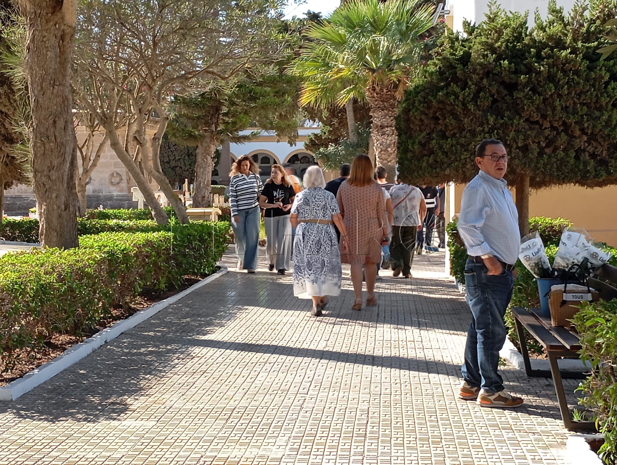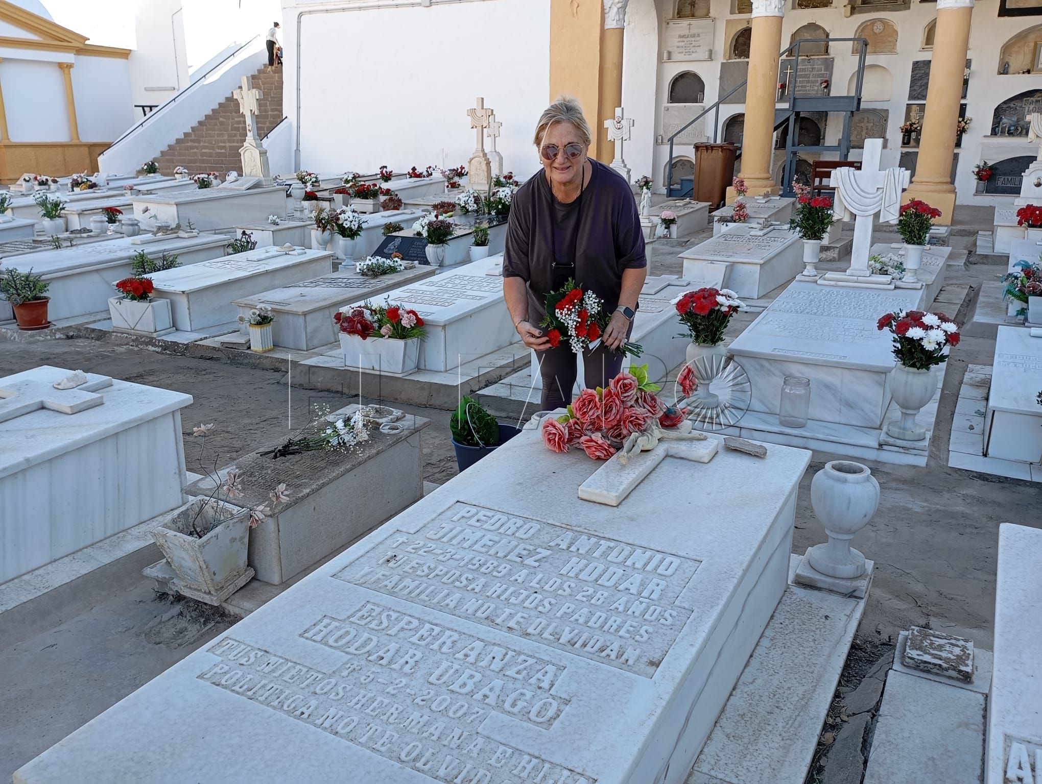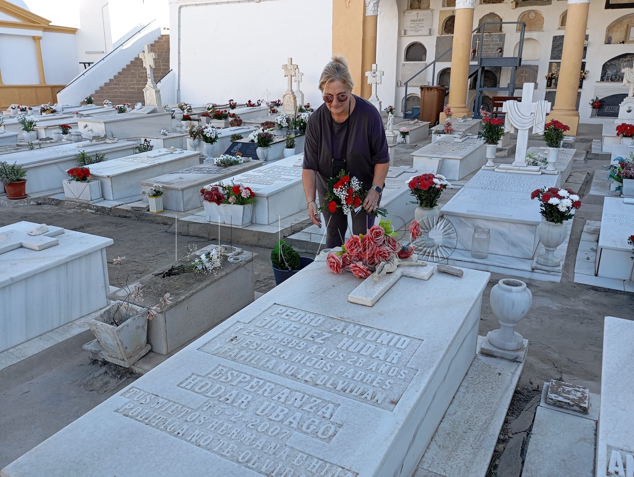 Encarnita Sánchez, de profesión maestra, estaba allí para visitar las tumbas de su suegro, su suegra y su cuñado, como hace, junto con su marido, todos los años, y también en el cumpleaños de su suegro, el día 30 de agosto. Los demás días no se acercan, porque su marido, según cuenta Encarnita, “cuando viene, se pone muy afectado”, hasta el punto de que “se tira encima de la tumba a llorar y no es recomendable, y menos ahora, que ya tiene 84 años”. Por ello, le aconsejaron que sólo acudiera al cementerio de vez en cuando y este año fue la única vez.