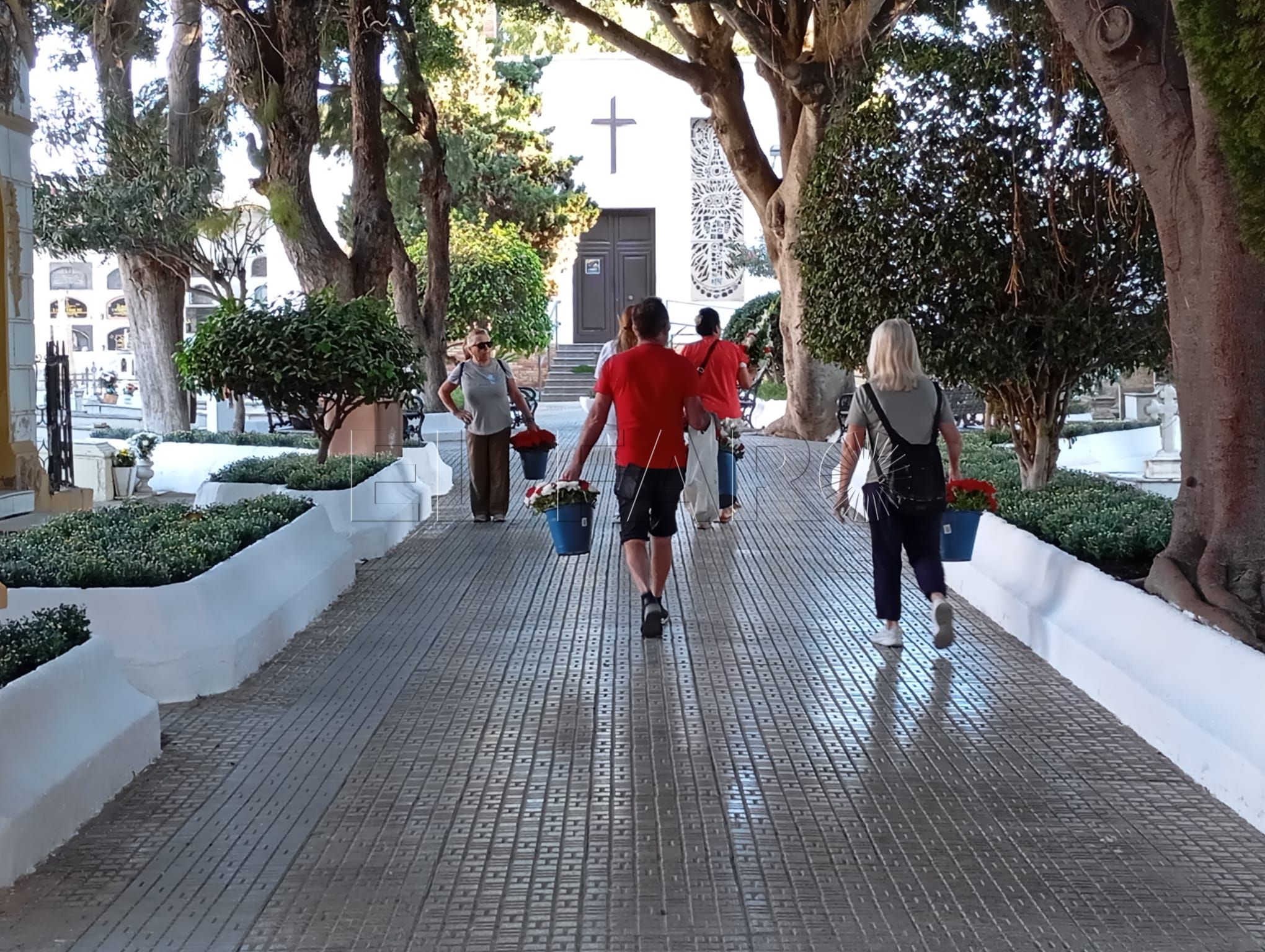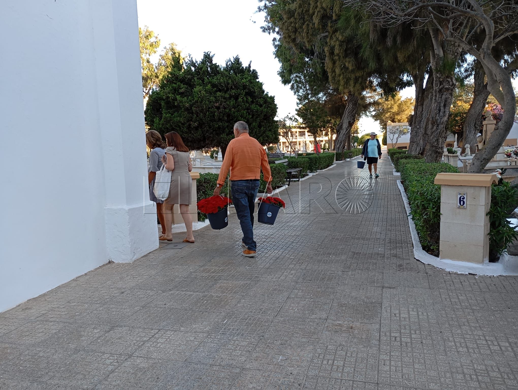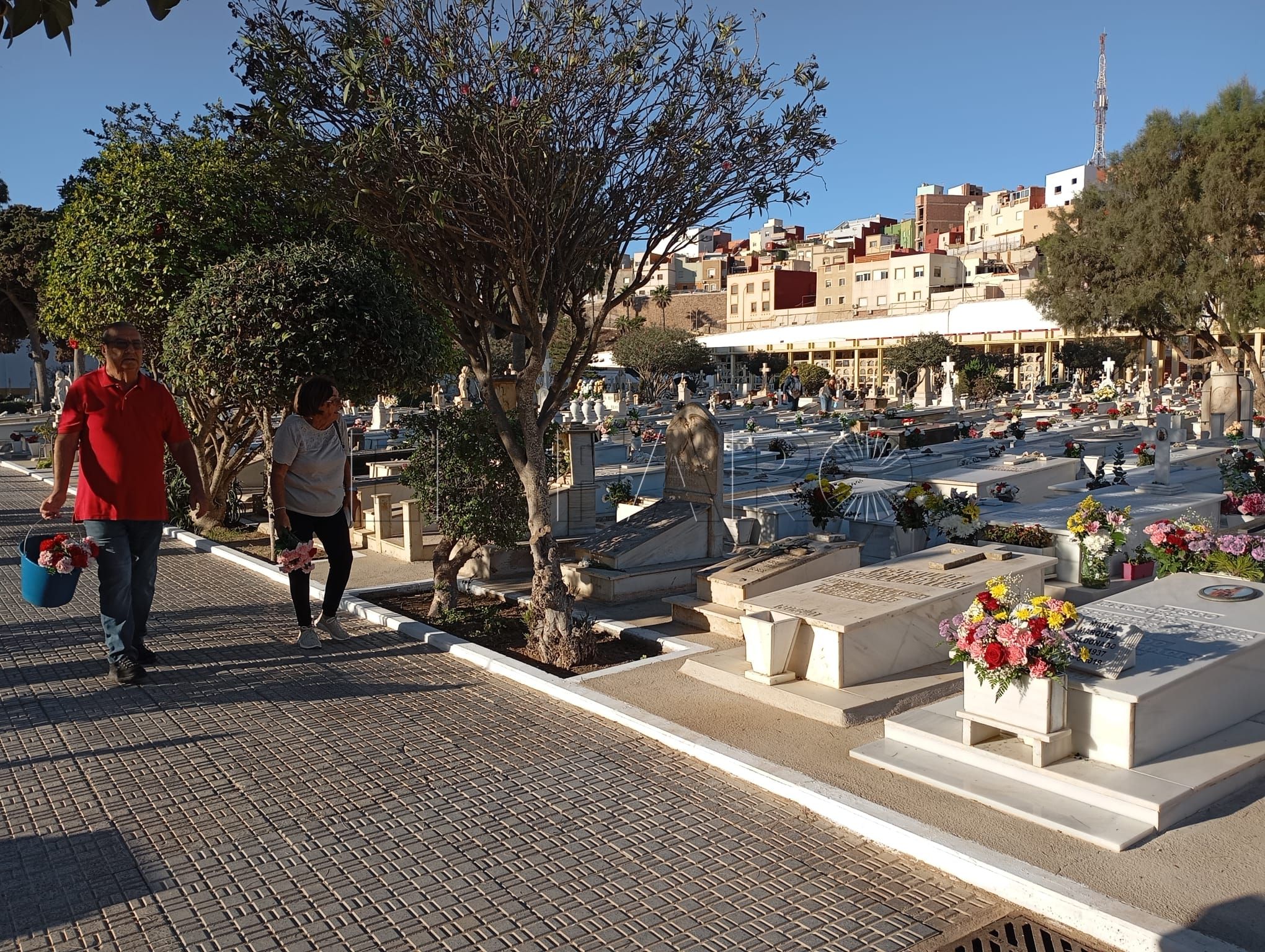 Cientos, puede que miles, de ciudadanos melillenses pasaron este sábado, Día de Todos los Santos, por el cementerio de La Purísima Concepción en cumplimiento de esa tradición de depositar flores sobre las lápidas de los seres queridos que allí yacen.