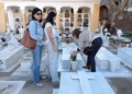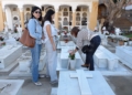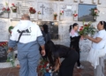 La familia Carmona Santiago deposita flores en una tumba. Fotos: J.R.P.
