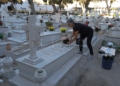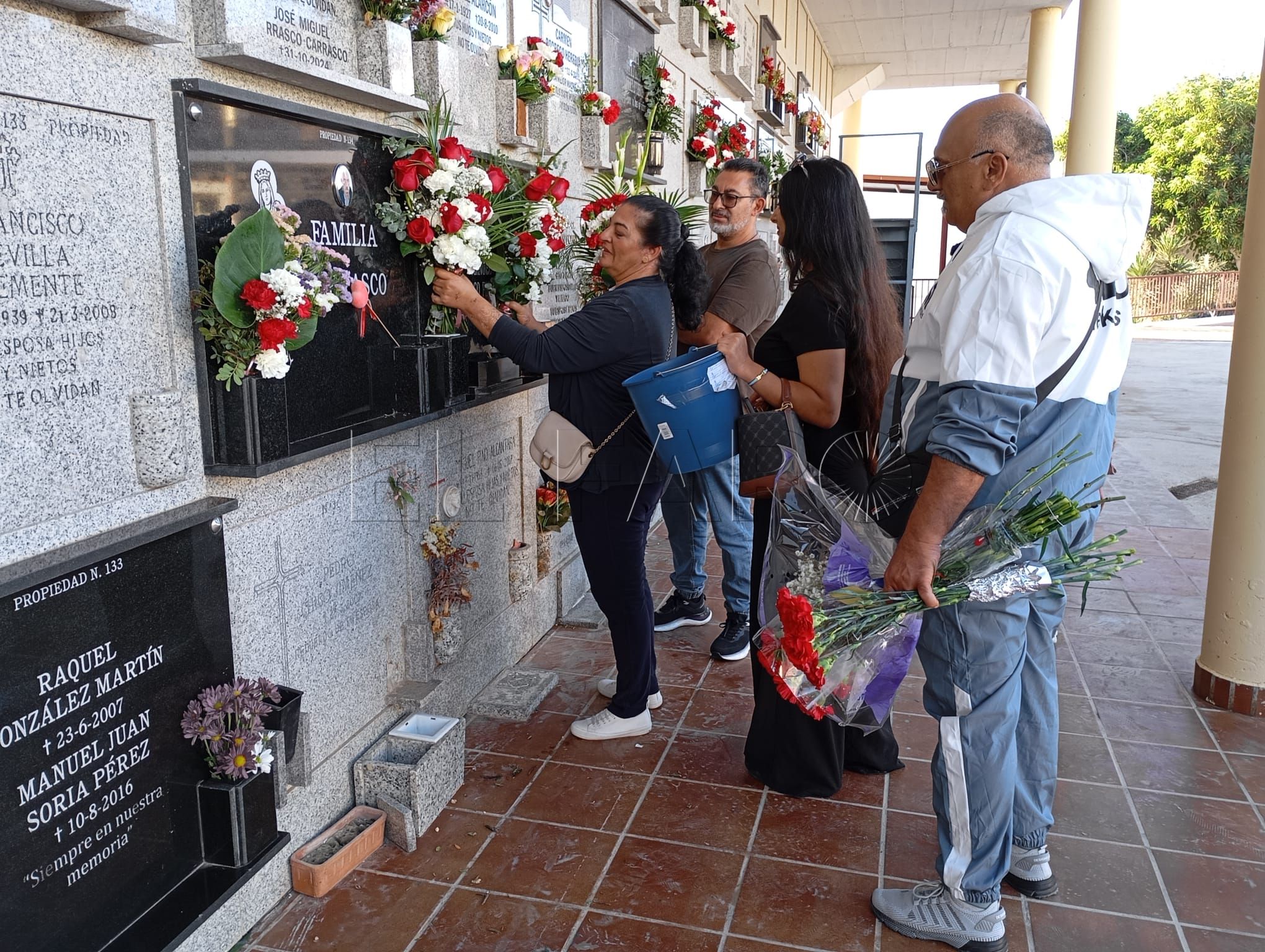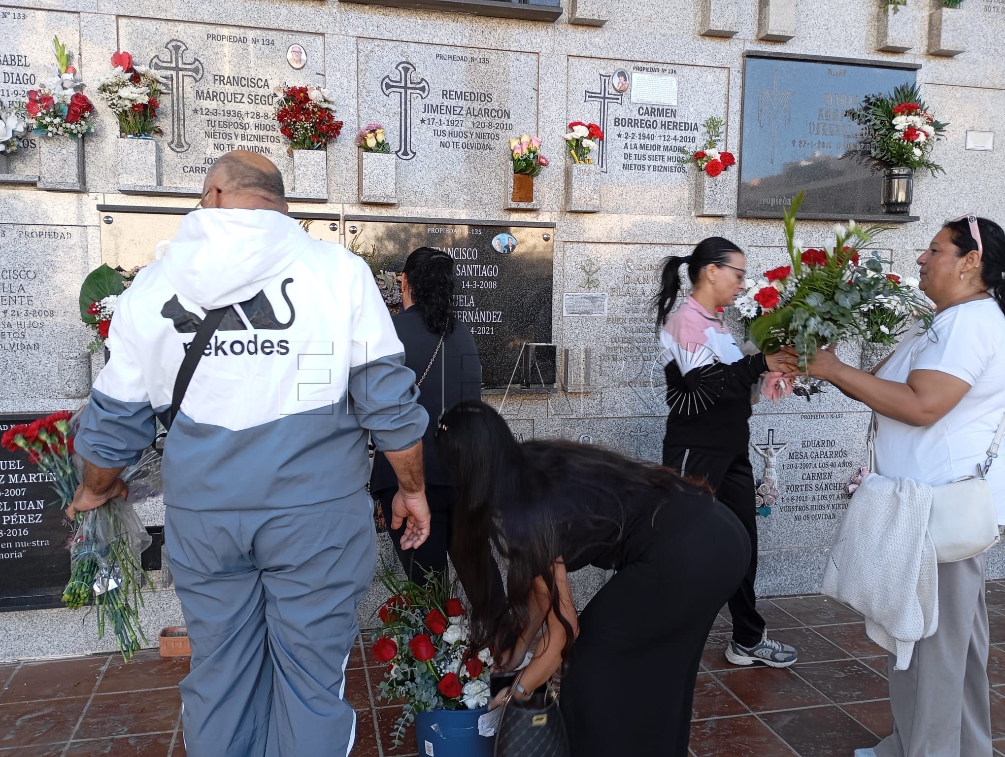 Las visitas al cementerio este día producen en algunas personas una sensación agridulce. Así sucede con la familia Carmona Santiago, que siempre tiene en mente los buenos momentos que han vivido con sus seres queridos, pero luego caen en la cuenta de que ya no están con ellos y los echan de menos. En cualquier caso, como apunta uno de ellos, “aunque se les recuerda siempre, es bueno venir de vez en cuando a limpiar y un día como hoy es imprescindible venir y recordarlos”.
