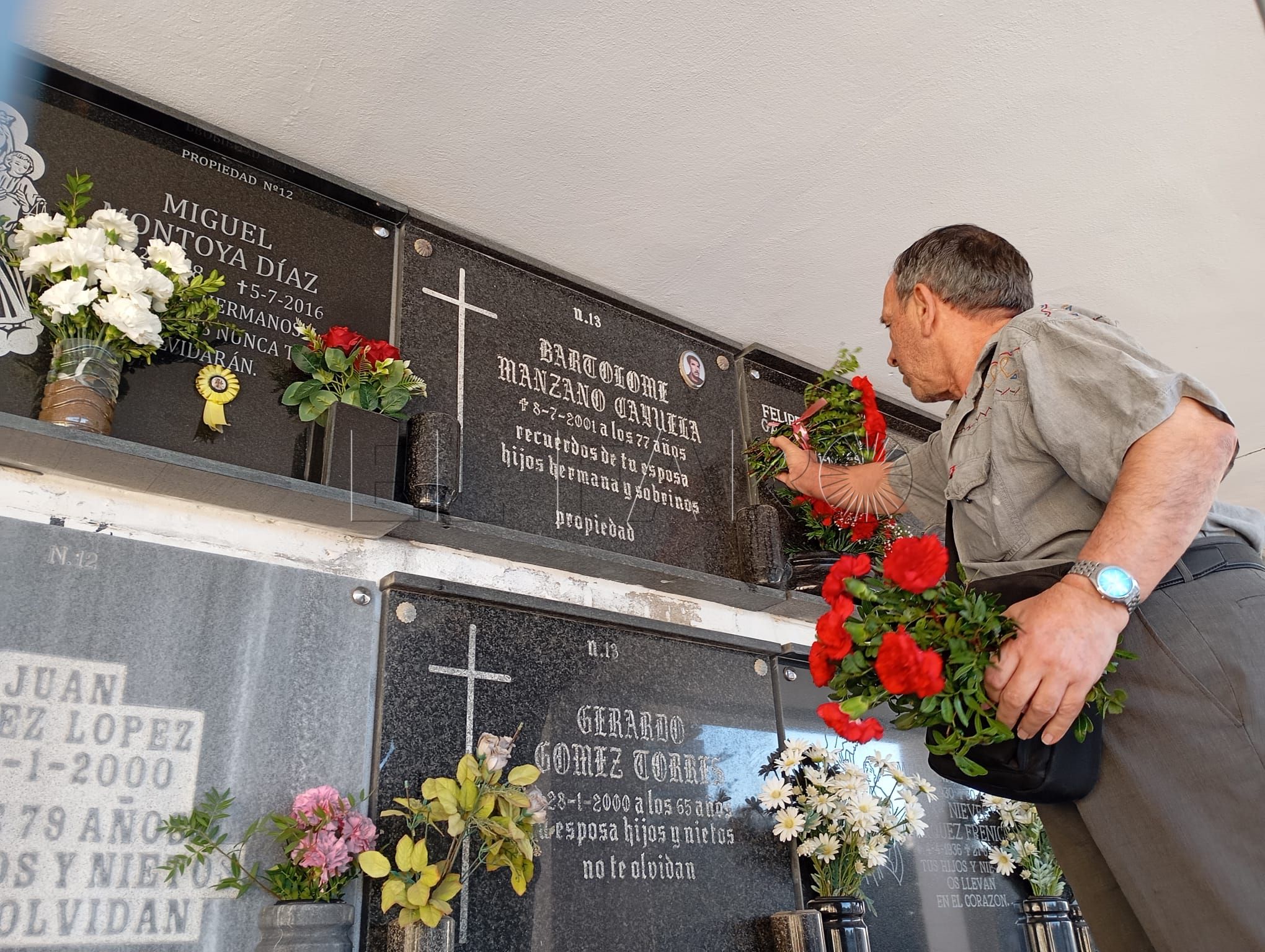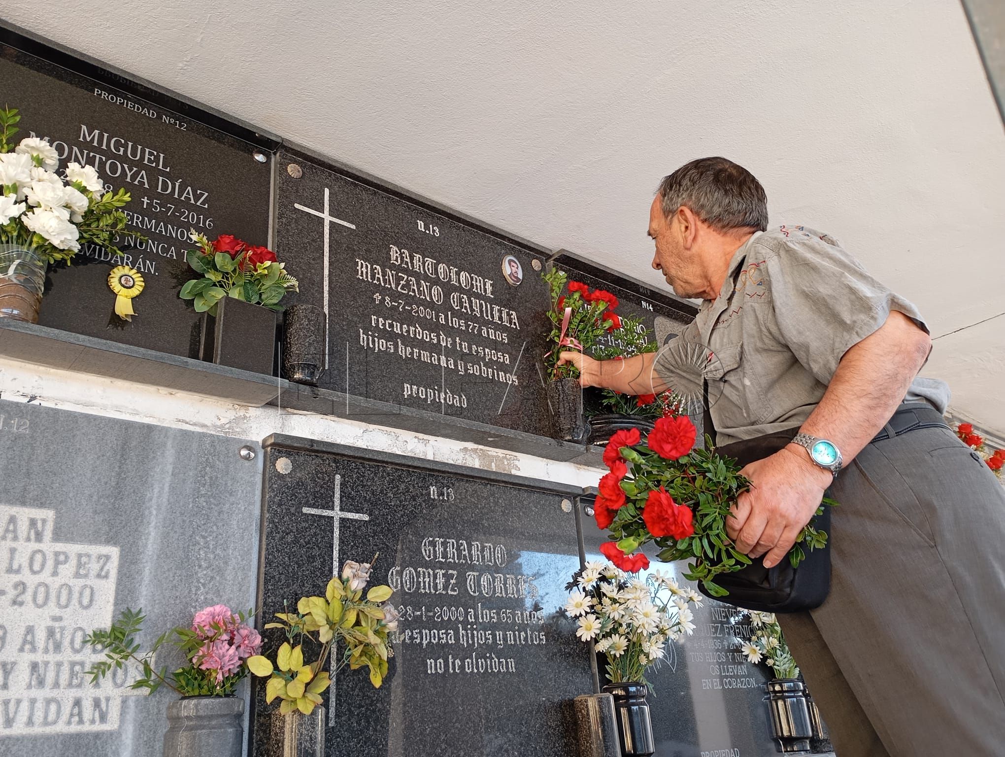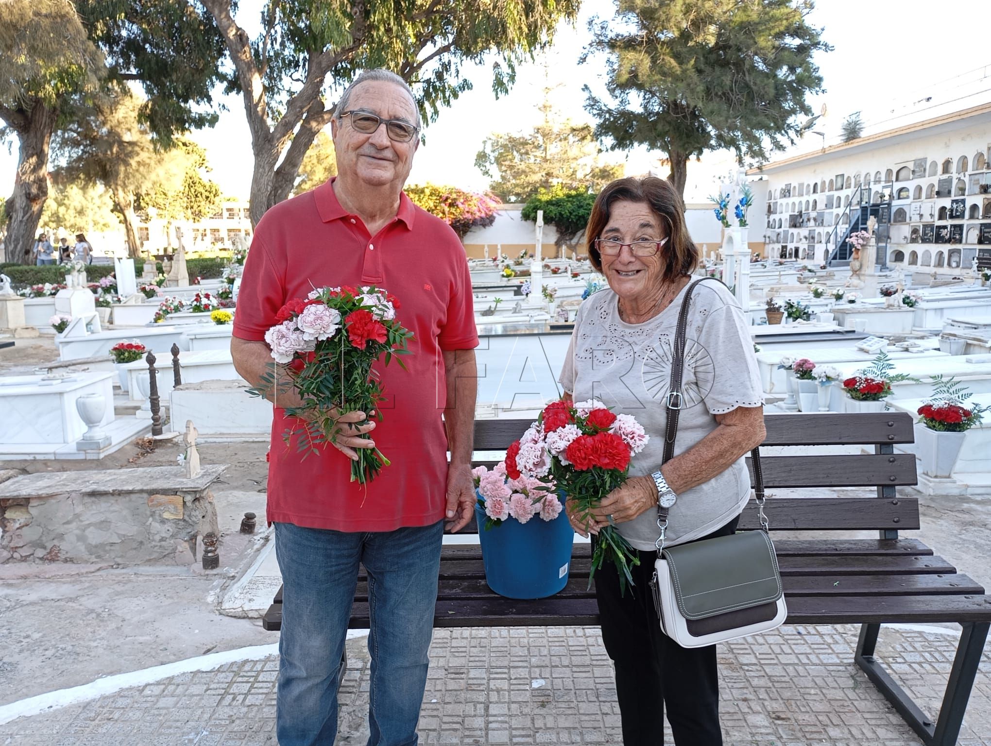 Nadie quiere olvidar a nadie en este día. Toñi Mateo y Ginés Segura llevaban flores para todos sus seres queridos, desde padres a hermanos y cuñados.