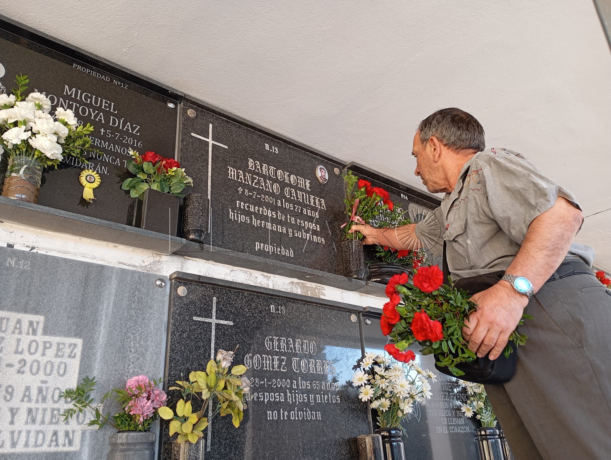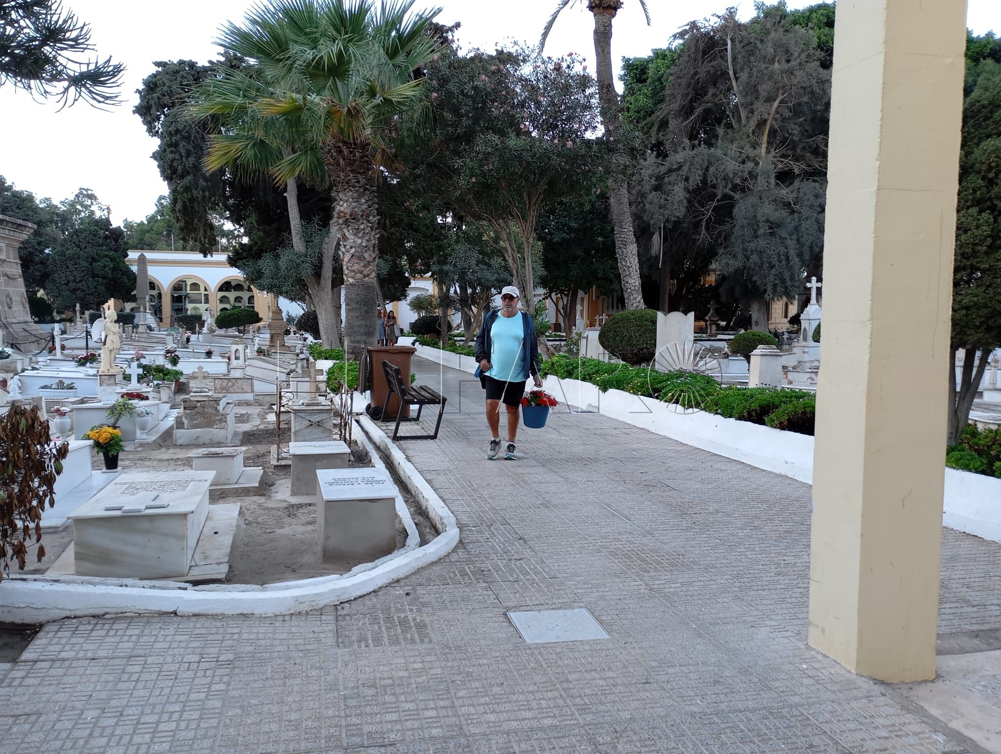 Hay historias de todo tipo este día en el cementerio. José Marín acudió a poner flores a unos familiares de mi mujer que vivían en Melilla. Resulta que la familia de ella era de la ciudad autónoma, de donde se marcharon a la península a trabajar para nunca volver. Ellos, nacidos en Málaga, hicieron el camino opuesto años después por motivos laborales y allí estaban. Cosas de la vida.