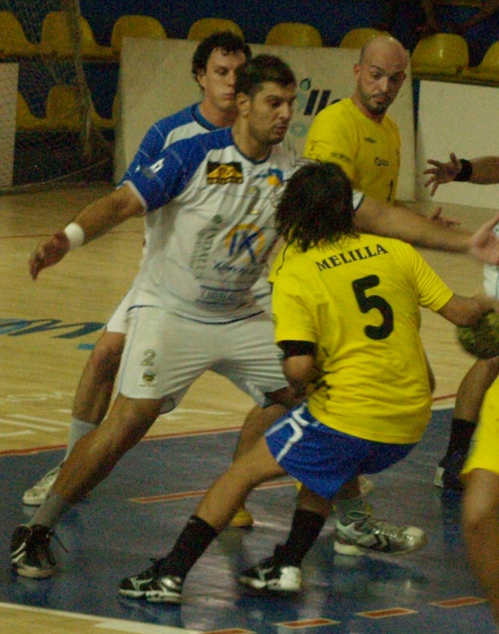 El encuentro comenzó con el dominio local y con los melillenses algo despistados y cometiendo muchas faltas que significaron muchas exclusiones para los jugadores amarillos. En el ecuador de la primera mitad ya habían sido tres los melillenses excluidos.