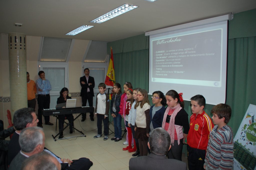 Diez alumnos del Enrique Soler fueron los encargados ayer de inaugurar las actividades de la II Semana Verde del proyecto ‘Ecoescuela’ con la presentación del nuevo himno que deleitó a todos los presentes entre los que se encontraban Antonio Miranda, Guillermo Merino y Ramón Antón que han colaborado con la iniciativa. De hecho, la Consejería de Educación firmó a principios de año un convenio de 25.000 euros para el centro y la escuela Miguel Marmolejo que permitirá la instalación de papeleras de reciclaje de diversos materiales en todo el recinto educativo.
