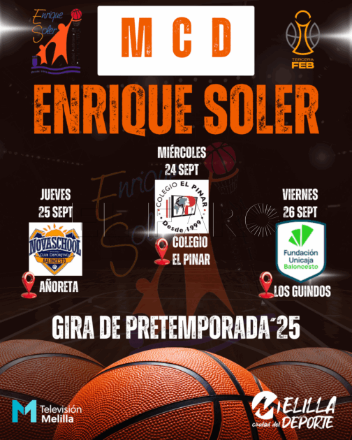 El Melilla Ciudad del Deporte Enrique Soler continúa con paso firme su preparación de cara a la temporada 2025/2026 dentro del grupo DA de la Tercera RFEF del baloncesto masculino a nivel nacional, y lo hace afrontando uno de los tramos más exigentes de su pretemporada: una intensa gira por la provincia de Málaga, donde el equipo colegial disputará tres partidos en tres días consecutivos frente a rivales de alto nivel pertenecientes a la estructura del baloncesto andaluz.