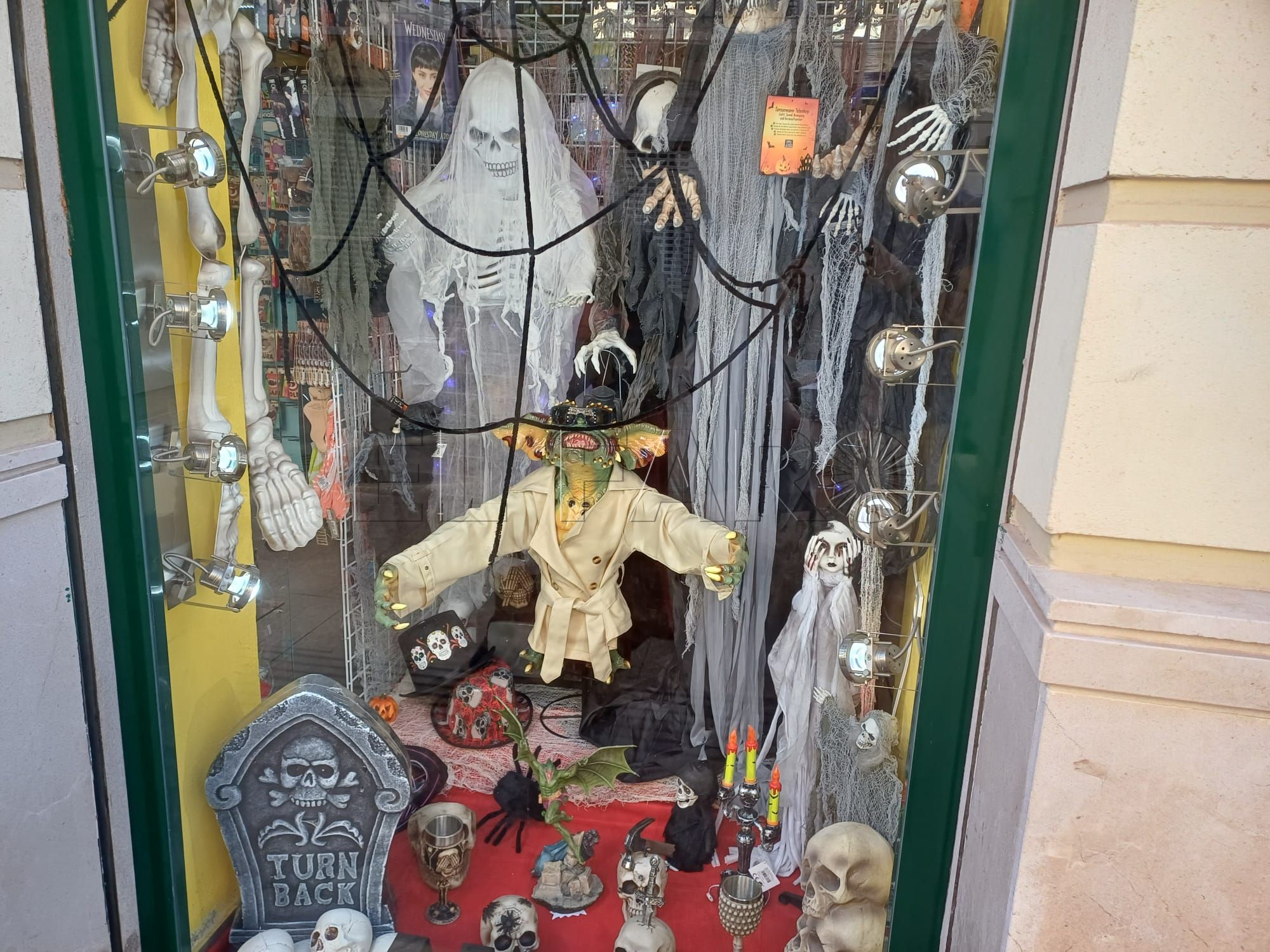 Algunos comercios se han decorado para la ocasión. Escaparates con telarañas falsas, calabazas o calaveras; cualquier artículo es un reclamo visual que invita a los melillenses a entrar y sumergirse en un mundo de fantasía y horror.