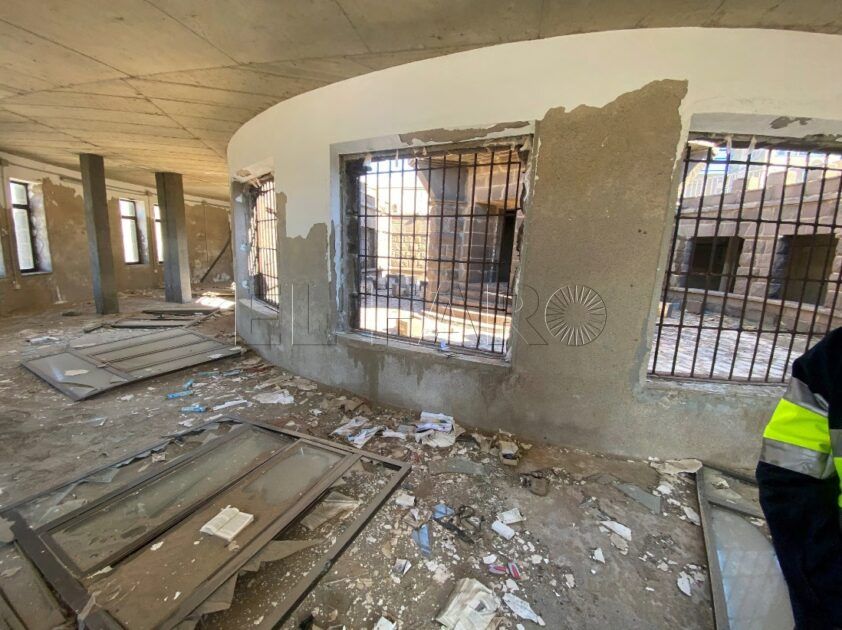 Igualmente se encuentran muy deterioradas las carpinterías, algunas de ellas desprendidas y, en general, todos los interiores, especialmente los de la planta alta, por el efecto del agua de mar y arenas. Todos esos impactos han provocado fisuras, grietas y desprendimientos por carbonatación en la estructura de hormigón con la que se sustenta el interior del inmueble.