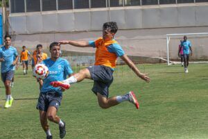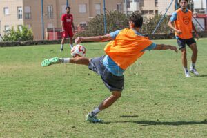 El equipo filial de la UD Melilla que estará la próxima temporada en el grupo IX de la Tercera RFEF se vistió de corto en la mañana de este miércoles para la realización de una intensa sesión de entrenamiento de pretemporada y donde el fuerte calor fue el protagonista de lujo en cada uno de los ejercicios realizados por los jóvenes valores de la cantera de nuestra ciudad, sobre el césped del anexo del estadio municipal Álvarez Claro que fue donde se desarrolló todo el trabajo con el balón.