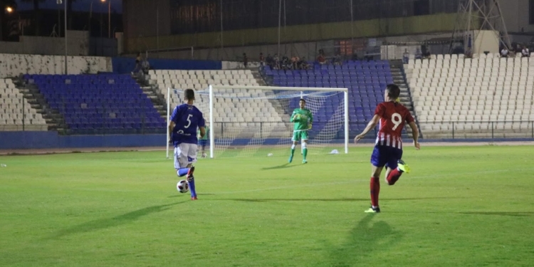 Con 0-2 en el marcador, el filial rojiblanco replegó líneas dejando muy solo arriba al melillense Borja Garcés, que no paró de pelear durante toda la primera mitad y que pudo tener el premio a ese trabajo en un remate muy forzado que no encontró puerta.