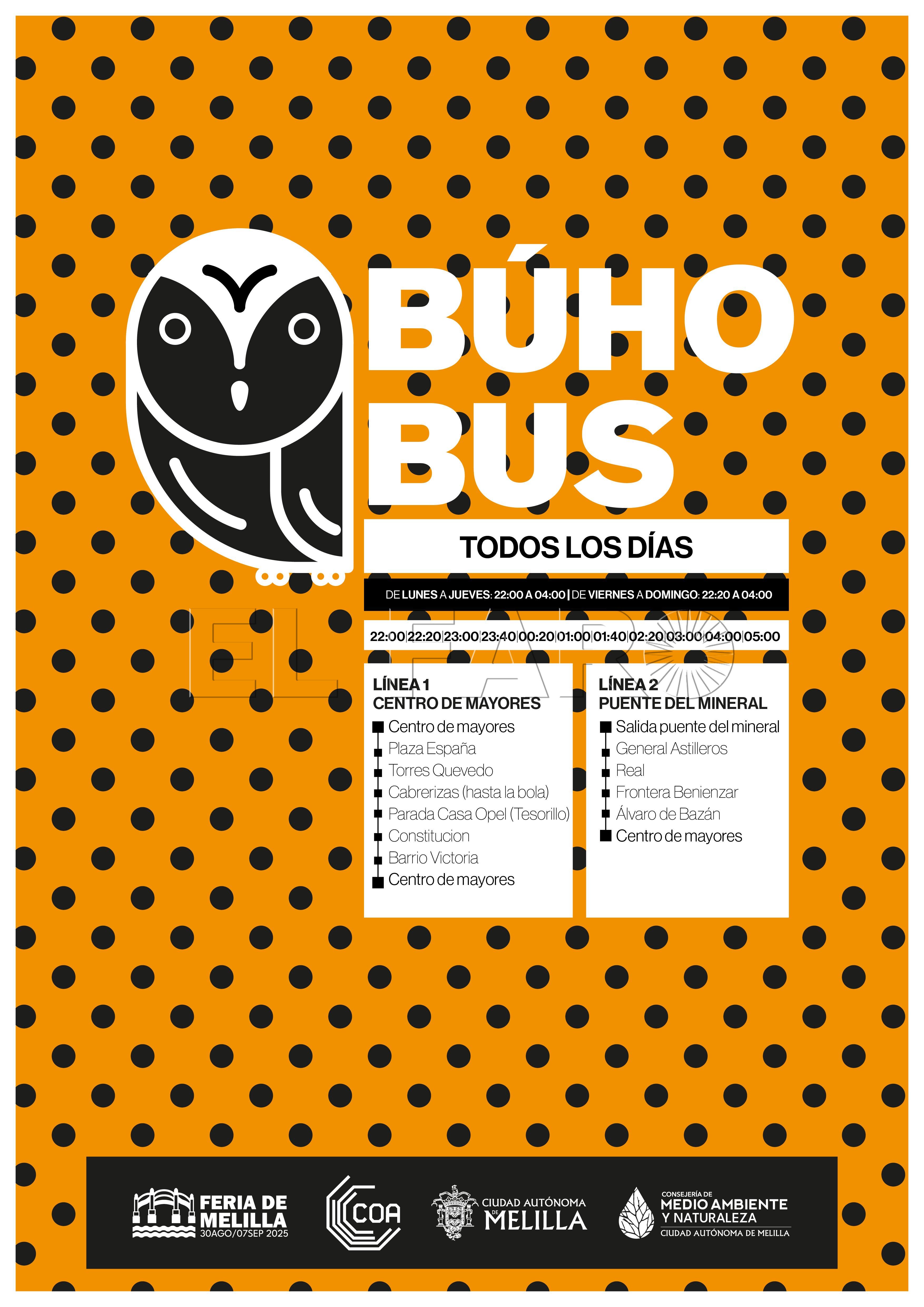 “Son dos actuaciones que ya son tradicionales en nuestra feria. El servicio público de autobús, que en este caso es el Búho Bus, va a estar activo durante todo el periodo de feria, al margen de todas las líneas que normalmente funcionan a diario”, ha señalado Ventura.