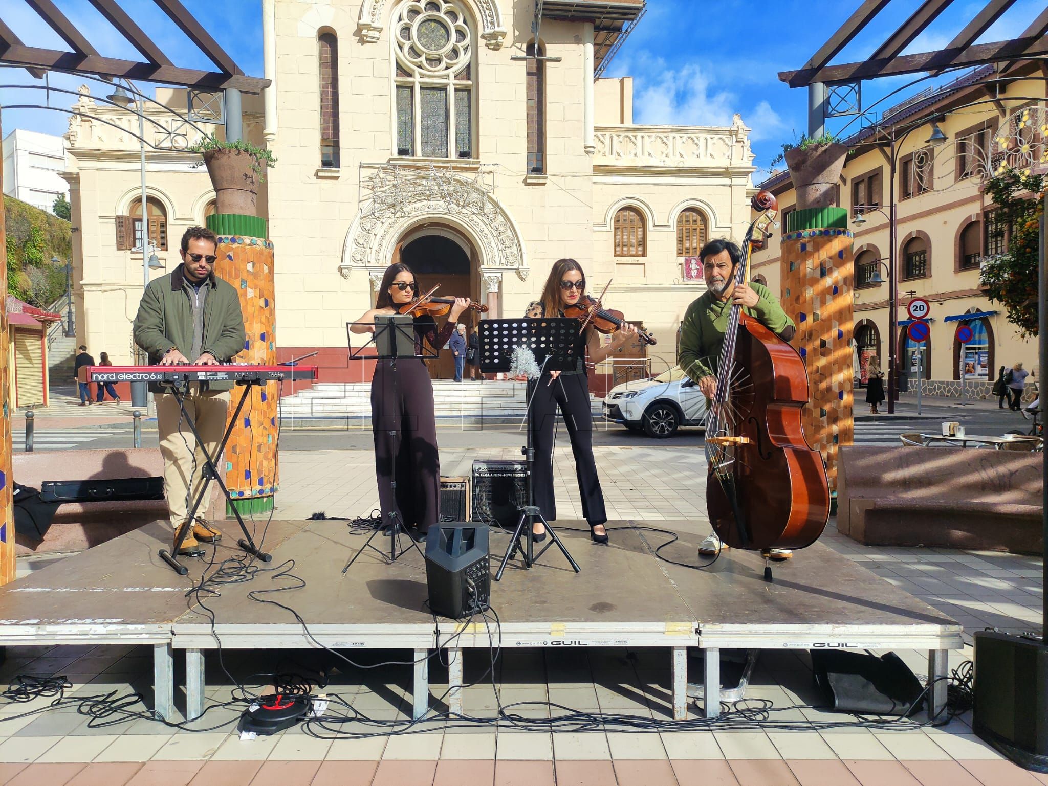 Durante sus actuaciones, han reinterpretado piezas tan conocidas como Aleluya, Noche de Paz, Let it go de la película Frozen, Campanas de Belén, Marry Chritmas, Feliz Navidad o el villancico de moda Palillos y Panderos de Niña Pastori, mezclando géneros, emociones y recuerdos. Auftakt convierte cada concierto en una experiencia diferente, donde el juego musical, la improvisación y la conexión con el público son las claves de su identidad artística. Un público que se sentaba en los bancos, se acercaba, grababa y aplaudía al cuarteto un día más. Dejándose llevar por la melodía y el encuentro con la Navidad a partir del piano, el violín y el contrabajo.