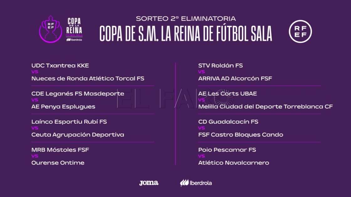 Además de la eliminatoria del cuadro melillense, dos sobresalen por encima de todas que serán las que midan al STV Roldán ante el Alcorcón y el plato fuerte que será el Poio Pescamar frente al Futsi Navalcarnero. Dos de los serios aspirantes a luchar por el título de campeón de la Copa de la Reina se quedará fuera de la fase final de este evento.