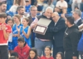 Durante el acto, el presidente del Melilla Baloncesto hizo entrega a Javier Almansa de una metopa conmemorativa como muestra de agradecimiento por su dedicación y compromiso. Este reconocimiento simboliza la valoración de su trayectoria y su implicación en el crecimiento del baloncesto en la ciudad, tanto en el ámbito federativo como en el desarrollo de las estructuras deportivas.