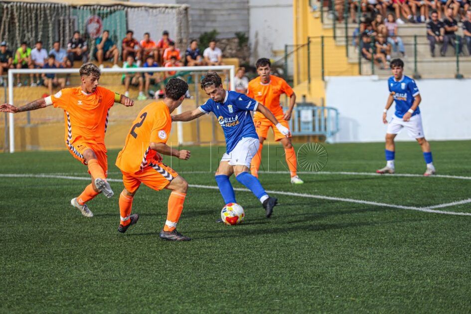 La primera parte fue bastante intensa por parte de los dos equipos. En el minuto 6’ José Pablo tuvo la ocasión más clara del partido tras quedar solo frente al portero después de un pase en profundidad de Abraham. El disparo del sevillano fue atajado por Juan, portero del Calavera. Las buenas sensaciones eran claras en el conjunto azulino y dominaban tanto en el juego aéreo como en la posesión.