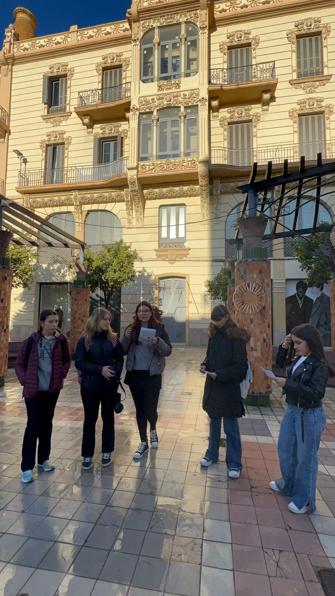 Los alumnos de la asignatura de Expresión Artística de 4º de la ESO del Instituto de Educación Secundaria Obligatoria Enrique Nieto han recorrido en la mañana de este miércoles 17 de diciembre las calles del centro de nuestra ciudad para conocer en profundidad las fachadas más representativas del modernismo melillense.