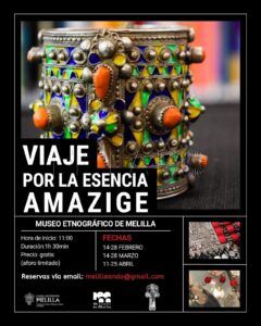 El Museo Etnográfico de las Culturas Amazigh, Sefardí y Gitana de Melilla acogerá durante los próximos 3 meses la exposición 'Viaje por la esencia amazige'. Una muestra que reunirá un amplio número de piezas de joyería y que invitará a los asistentes a descubrir, mediante visitas guiadas, la riqueza cultural de este pueblo milenario.