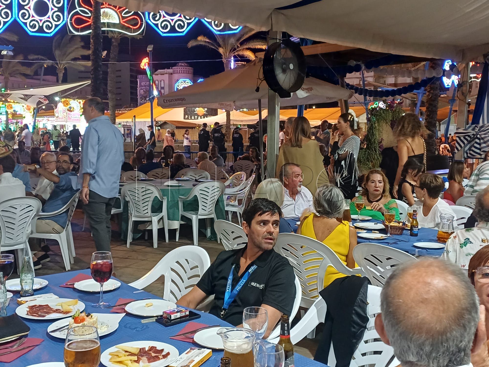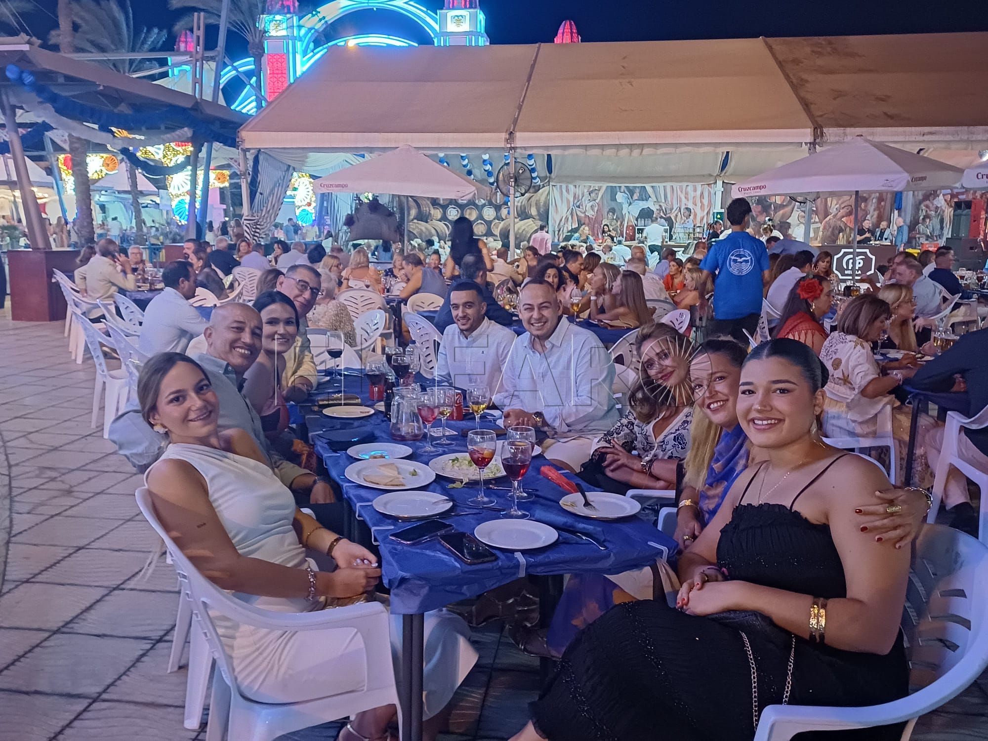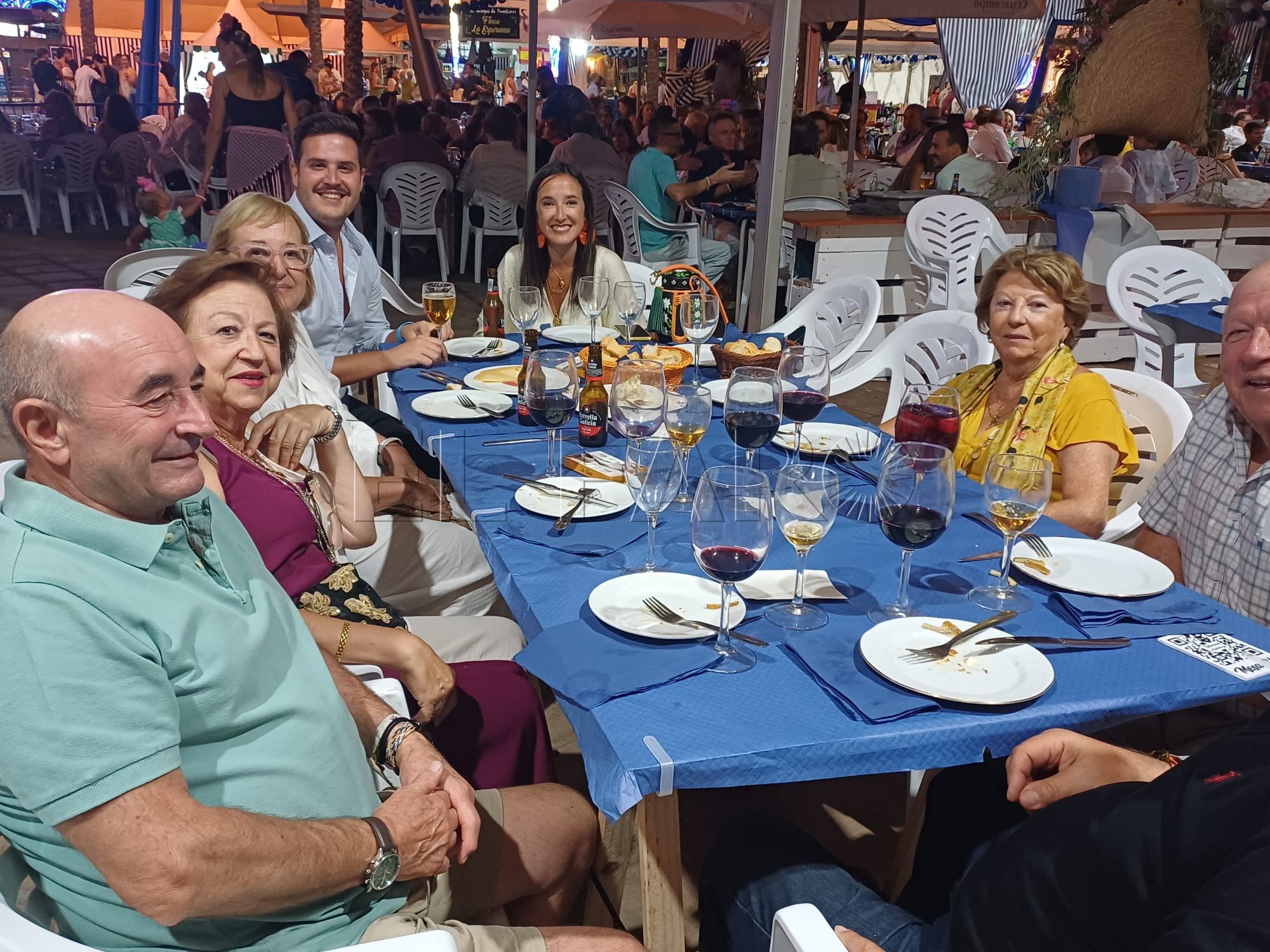 Posteriormente, los comensales comenzaron a degustar los mejores platos, desde embutidos o ensaladilla hasta unos deliciosos pinchitos. Una velada amenizada con la mejor música de 'El Rompeolas', mítico grupo de la caseta que ofreció la noche más flamenca que arrancó a bailar a muchos asistentes y que llenó la caseta de alegría y color.