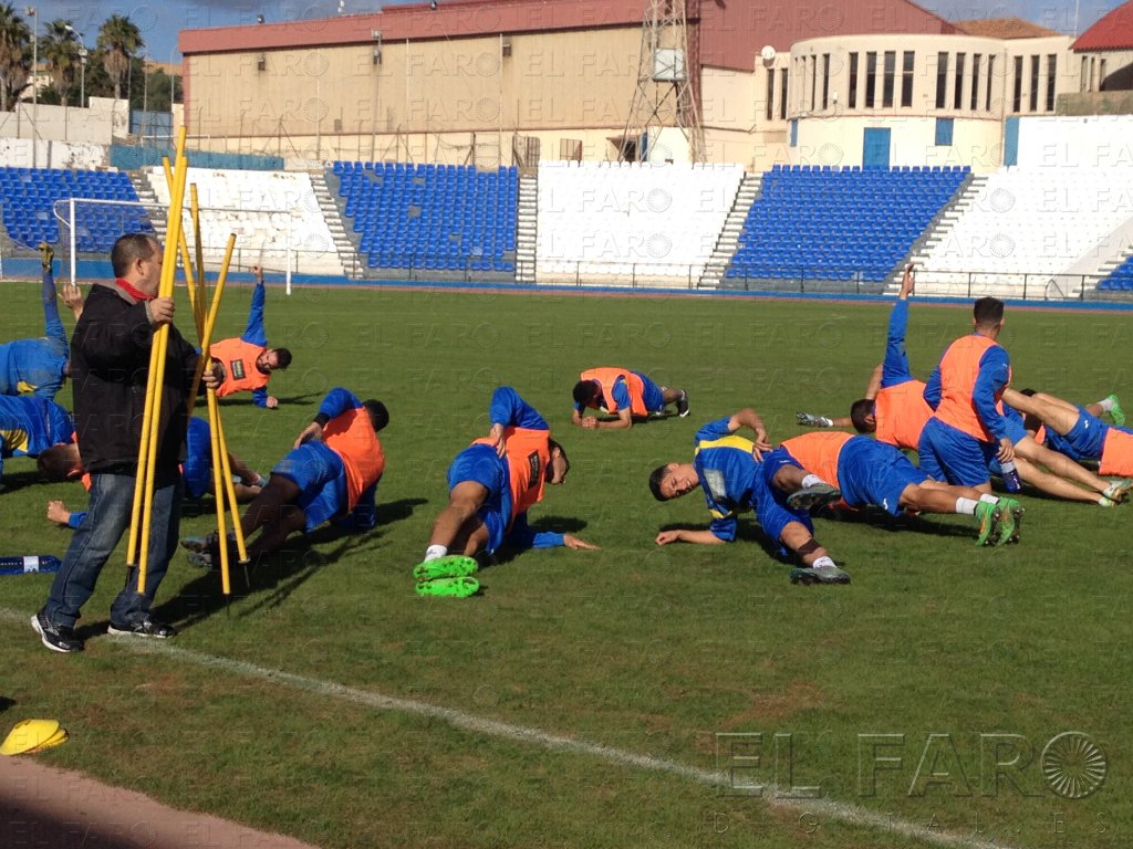 El plantel de la UD Melilla se ejercitó en doble sesión.