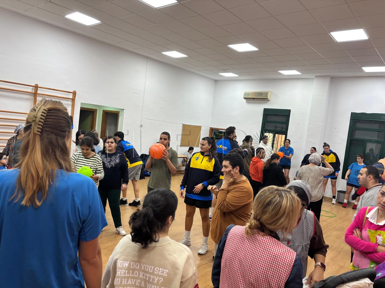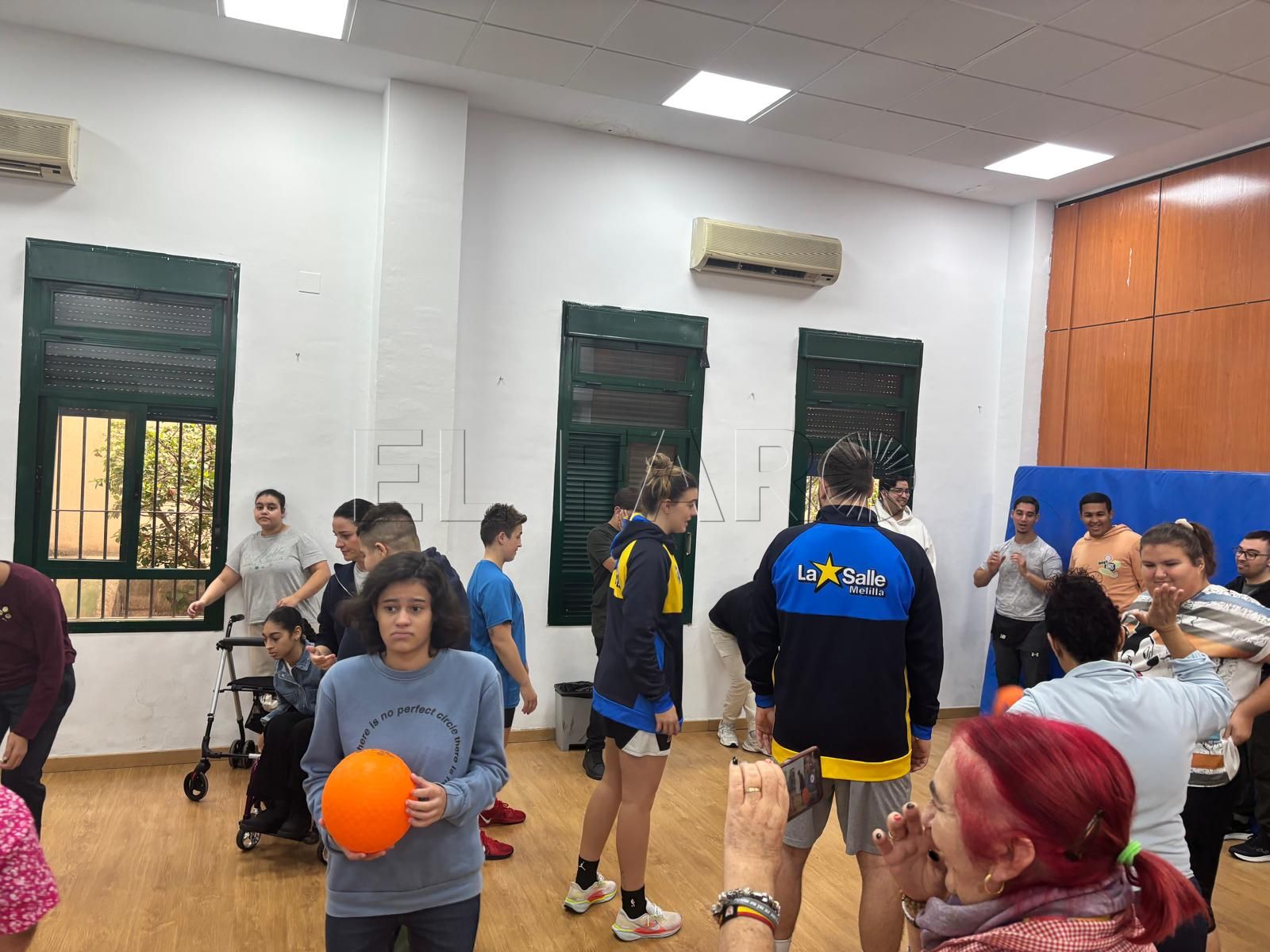 Las jugadoras y los integrantes del cuerpo técnico del Melilla Ciudad del Deporte Club Deportivo La Salle, que milita en la Liga Femenina Challenge, realizaban este pasado viernes una visita al Colegio de Educación Especial Reina Sofía, donde eran recibidos por un numeroso grupo de alumnos en el gimnasio de este centro escolar, debido a las malas condiciones climatológicas.