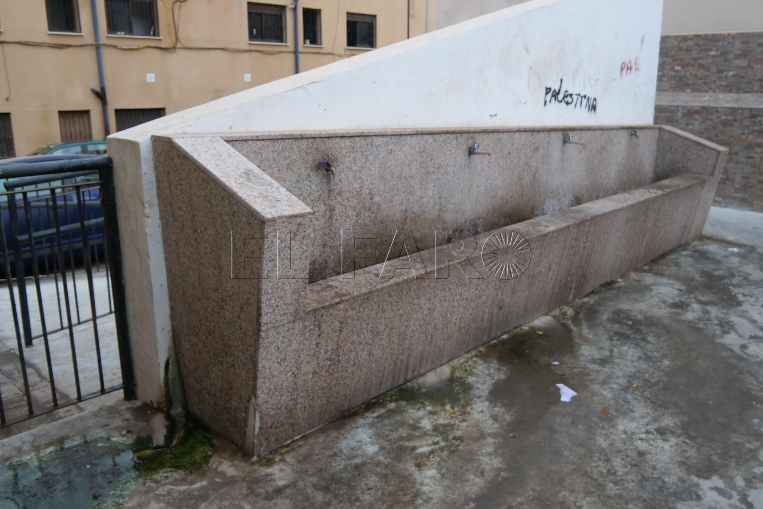 Los vecinos denuncian que son ellos mismos quienes tienen que fregar las aceras frente a sus viviendas porque no pasa un camión de baldeo desde hace años. La fuente pública de la calle Colombia presenta un estado de total abandono, reflejo de la falta de mantenimiento en el barrio.