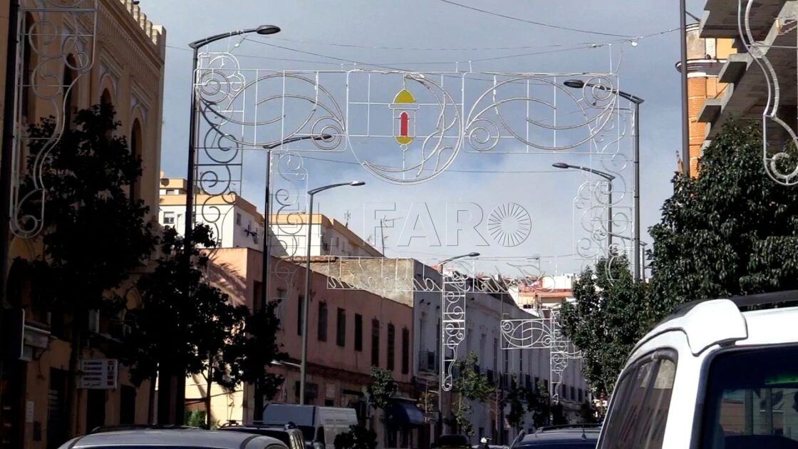 La calle García Cabrelles y otras vías aledañas ya lucen la iluminación con motivo del Ramadán. Sin embargo, este año El Rastro no contará con el túnel de luz que cada año se instala frente a la Mezquita Central.