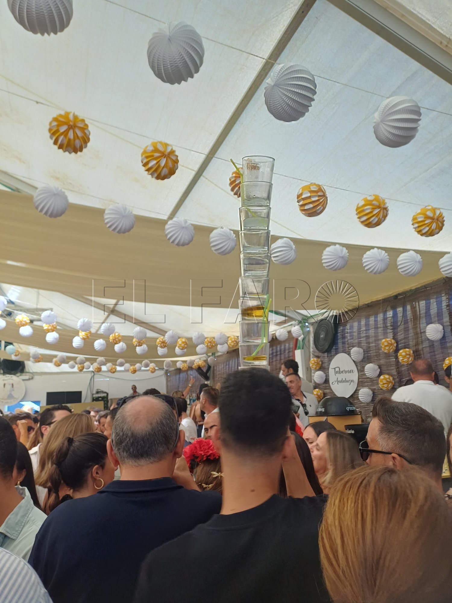 El viento de poniente, en ocasiones especialmente fuerte, puede que ahuyentase a algunos de bajar a la Feria, pero no impidió ni por un momento el normal desarrollo de la misma. Las casetas, bien es cierto que en algunas más que en otras, reflejaban en su asistencia el buen ambiente que llenaba la zona. La música tradicional, los trajes de flamenca y la alegría acompañaron a un domingo espectacular.