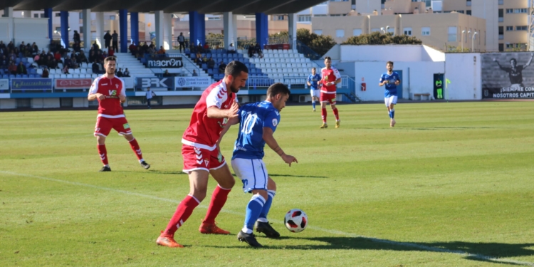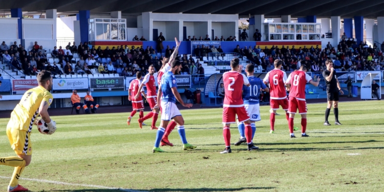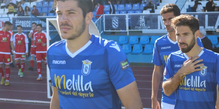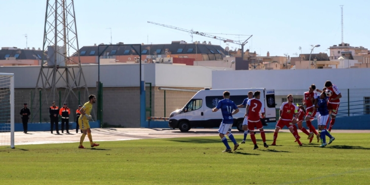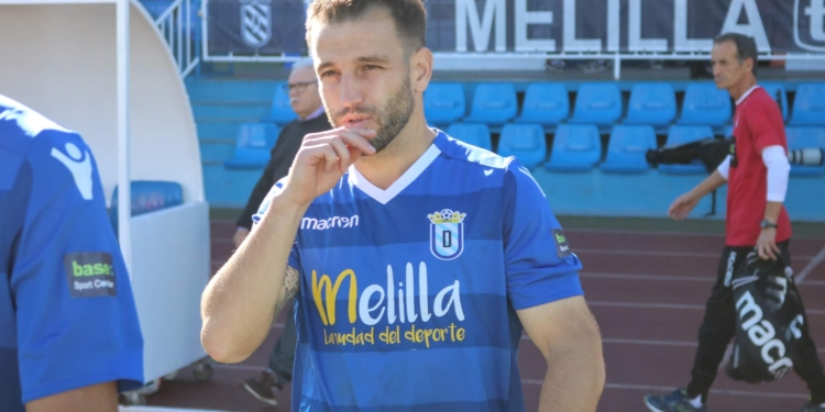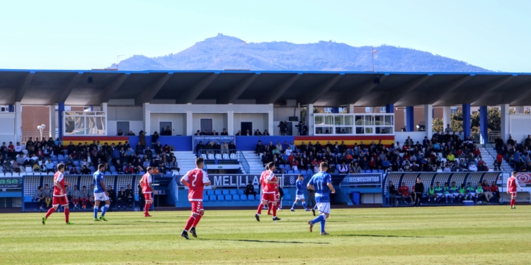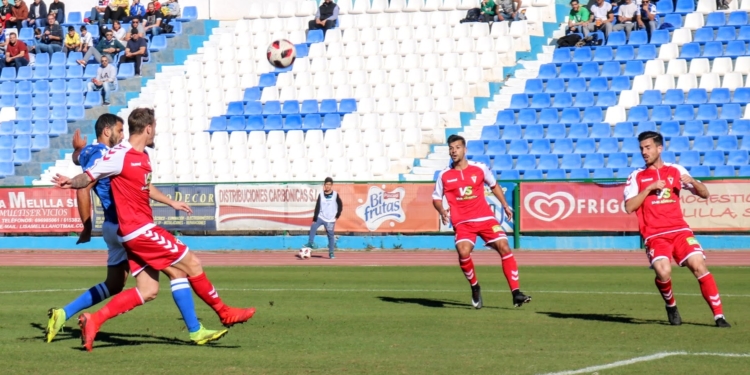 El crono avanzaba sin apenas nada de interés sobre el maltrecho verde del Municipal melillense hasta que al filo de la media hora de partido de nuevo un centro de Pepe Romero desde la derecha lo remataba en semifallo Óscar García a las manos del portero grana.