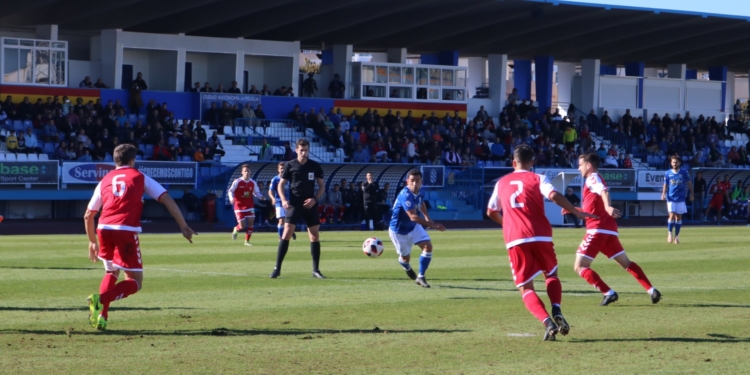Los primeros compases del partido no tuvieron un dominador claro, si bien el equipo azulino fue a más con el paso del tiempo ante un Real Murcia que fue cediendo terreno para intentar salir a la contra.