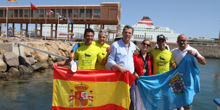 El consejero agradeció el trabajo y el esfuerzo de los tres deportistas malagueños y de las entidades colaboradoras, que han hecho que un evento con carácter solidario como el Desafío Alborán haya llegado a buen Miranda señaló que había tenido el orgullo “de daros la bandera de España y la de Melilla en este puerto, que sé que la vais a llevar como recuerdo toda la vida. Gracias por el sacrificio realizado, así como al barco de apoyo”. Por último, aseguró que la Ciudad Autónoma seguirá apoyando este tipo de eventos.