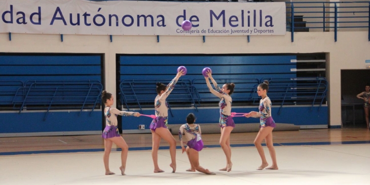 La Federación Melillense de Gimnasia Rítmica, comprometida con la iniciación deportiva incluye en estas competiciones a grupos de gimnastas que con tan solo cinco años son capaces de memorizar un ejercicio y coordinarlo con sus compañeras.