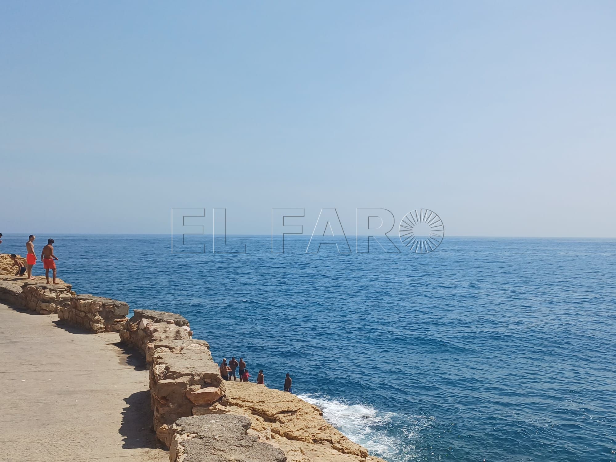 El baño en Aguadú es fundamental para un grupo de jóvenes de Barrio Cuerno que se estaban dando un chapuzón durante el mediodía de este miércoles. Amigos desde la infancia, afirman no recordar cuando fue su primer baño en esta zona, pero su cita aquí es ineludible. No en vano, los trampolines de la zona reúnen cada día de verano a una gran multitud de melillenses, especialmente a los más jóvenes, quienes dan sus mejores saltos para lanzarse al Mar de Alborán.