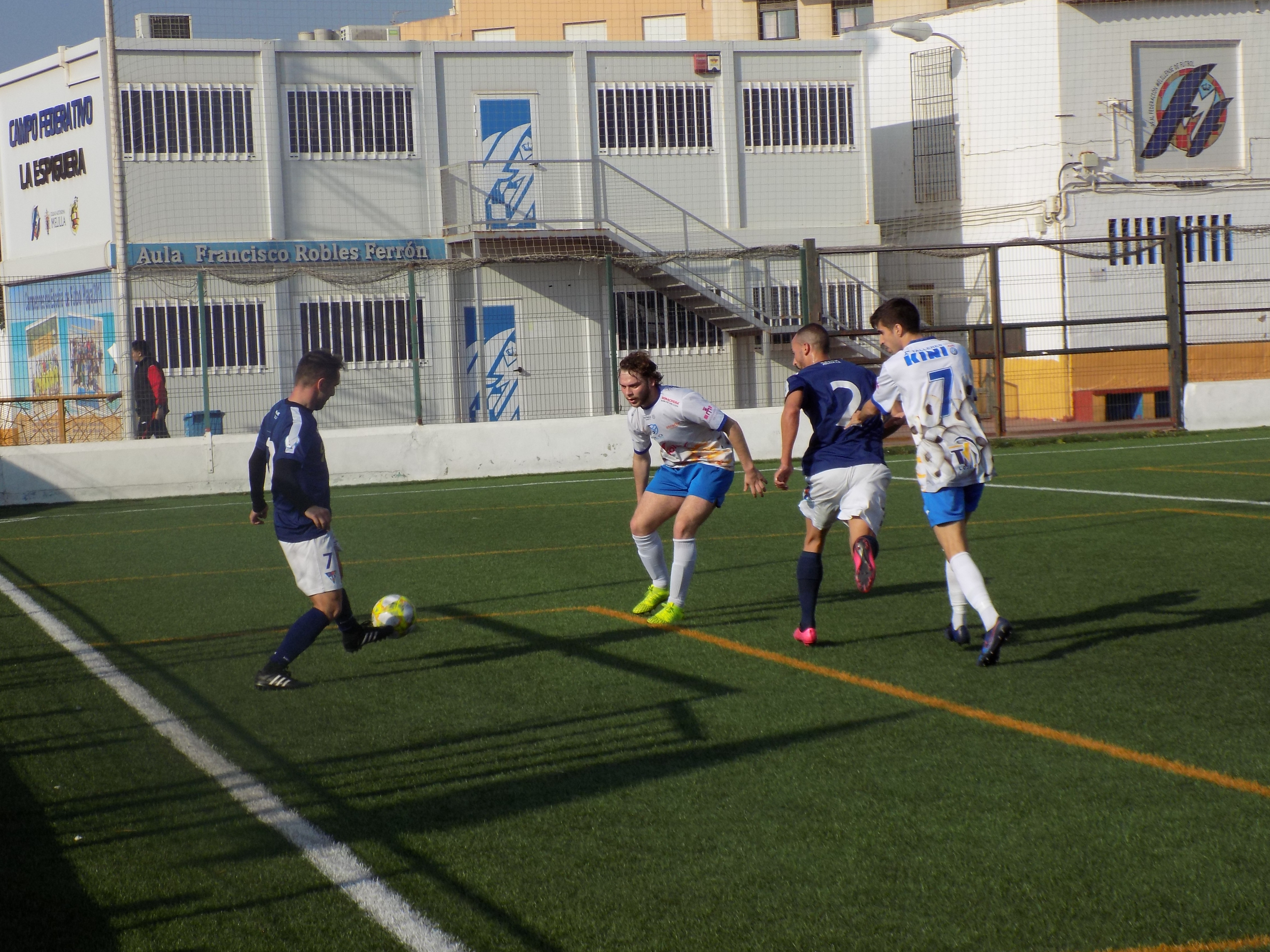 Tras el paso por los vestuarios el Melilla CD salió algo más enchufado. Los primeros minutos fueron igualados, pero con el paso del tiempo el equipo azulón fue acrecentando su dominio.