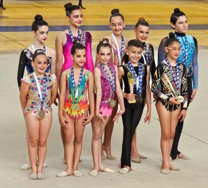 Neizan Buyemaa, campeón absoluto Uno de los grandes protagonistas fue Neizan Buyemaa, del Club Ágora, quien se proclamó campeón absoluto infantil masculino, logrando las medallas de oro en los tres aparatos en los que compitió: cinta, cuerda y pelota, y el trofeo al primer puesto en la clasificación general. Su actuación destacó por la precisión, expresividad y limpieza técnica, siendo ovacionado por la grada en cada una de sus intervenciones.
