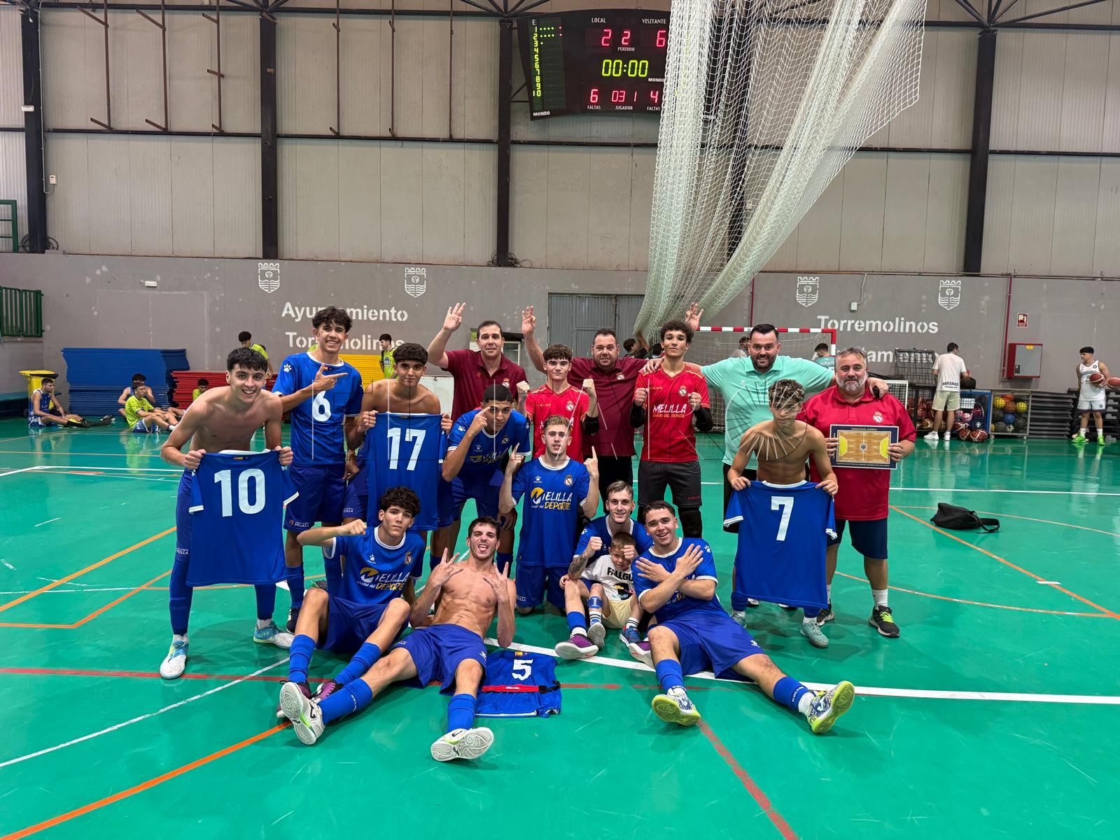 Torremolinos: Sandro, Arturo, David, Raúl Velasco, Ollora, Mata, Flores, Santander, Oziel, Carazo, Romero y Cabello. Peña Real Madrid: Nabil, Bienvenido, Adam, Hamed, Ayman, Jesús, Ismael, Cuenca, Yemel, Parra, Hamed y Armando.